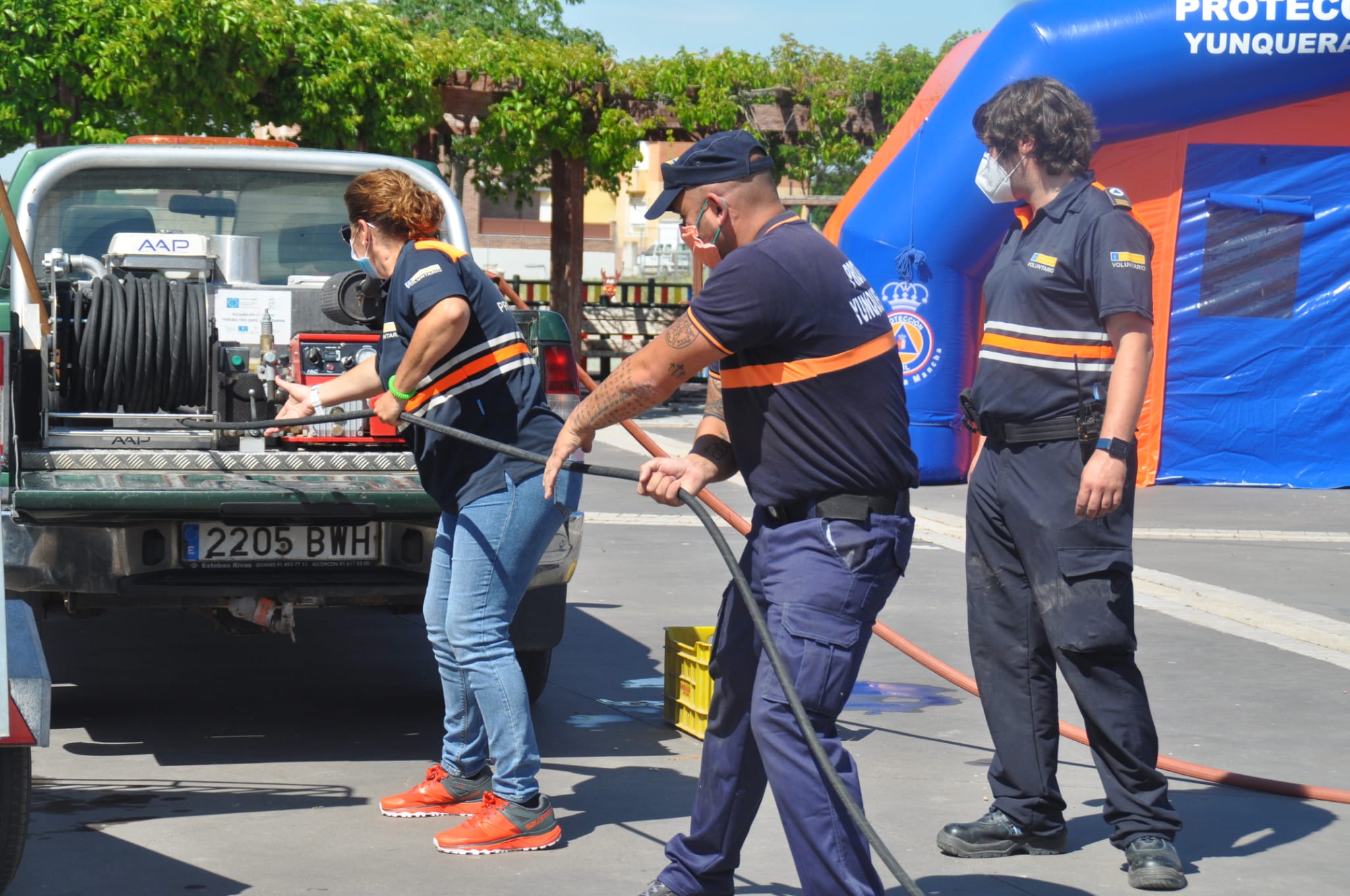 Junto a los compañeros de la vecina Fontanar, los voluntarios montaron sus tiendas de campaña de Puesto de Mando Avanzado y Puesto Sanitario Avanzado. También comprobaron los hidratentes, montaron sus mangueras en las bocas de riego, probaron su motobomba y comprobaron los equipos de radio.