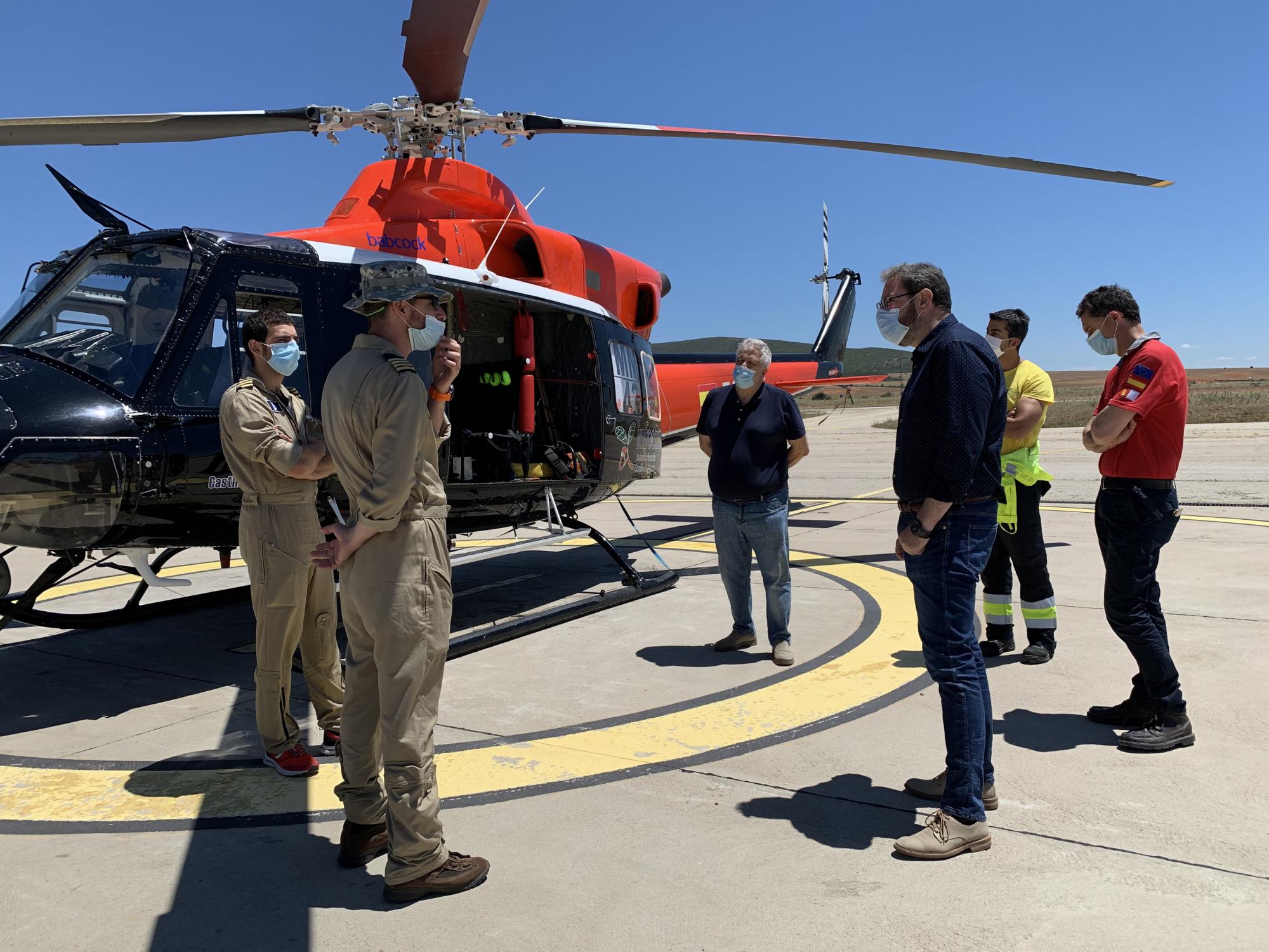 Tras visitar algunas de las actuaciones preventivas realizadas en las inmediaciones del paraje del Alto Rey, el delegado de la Junta ha visitado junto con el alcalde de la localidad, Mariano Escribano, la base aérea de Las Minas-Hiendelaencina, donde ha tenido oportunidad de comprobar que tanto los medios materiales como humanos destinados a la campaña de extinción de incendios en la provincia de Guadalajara se encuentran preparados y en alerta ante cualquier eventualidad que pudiera producirse en el territorio.