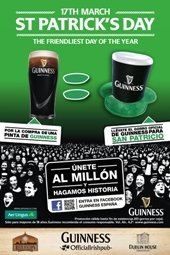Asi pues, con la compra de una pinta guinness en el Dublin House de Guadalajara se regalará el mítico gorro oficial guinness de San Patricio, hasta final de existencias. El desfile más destacado del día de San Patricio es el de la ciudad de Nueva York, en el participan más de dos millones de espectadores.