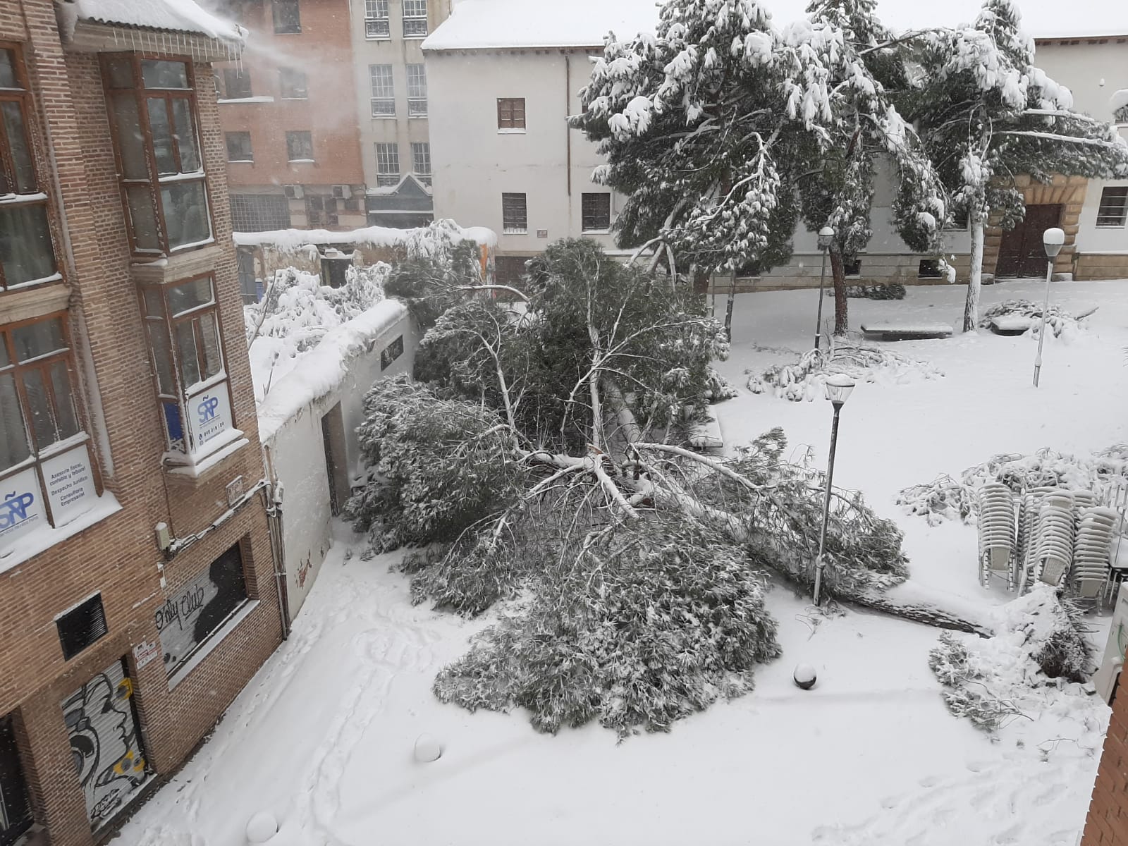 Muchos de los avisos están relacionados con la caída de ramas y árboles de gran tamaño que dejan imágenes desoladoras en lugares como la Plaza de San Esteban, la Plaza del Jardinillo o los parques de la Constitución y del Coquín.