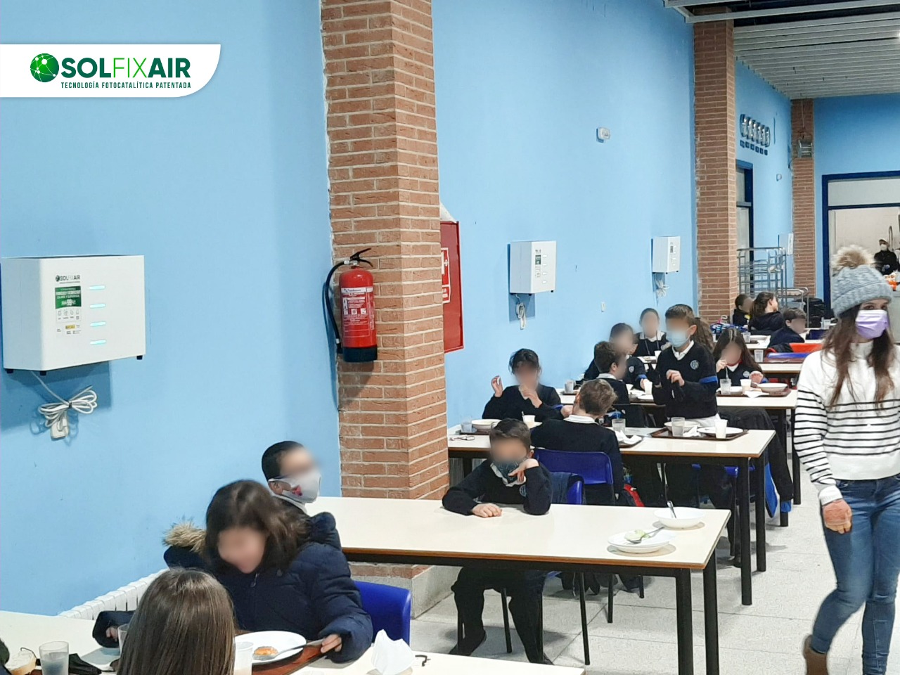 Por otro lado, los radicales que se generan en el proceso destruyen las bacterias y bio-aerosoles presentes en el aire, impiden la actividad viral y consiguen un efecto de desodorización, por lo que resultan también de gran utilidad en el comedor del colegio eliminando olores del ambiente.