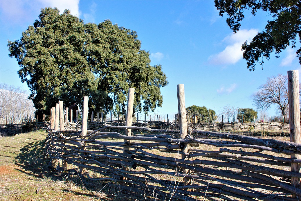 Dos formidables encinas centenarias de más de 250 años de antigüedad con un porte de 15 metros de altura y protegidas por sendas cercas de trenzado vegetal confeccionadas con tallos de ailanto, especie exótica invasora que abunda en este paraje. Ocho mesas rústicas con bancos adosados tipo pic-nic de una sola pieza que forman la zona estancial y un agradable paseo de 300 metros de longitud, delimitado en una de sus márgenes por una valla de madera, que llega hasta las puertas de la Unidad Residencial y Rehabilitadora de Alcohete y discurre paralelo a la carretera de acceso. Son los elementos más característicos de la nueva Área Recreativa de Alcohete, una superficie verde de 2,5 hectáreas de superficie que el Ayuntamiento de Yebes ha convertido en el tercer parque público de mayor extensión del municipio tras los de ‘Federico García Lorca’ y la Paz y los Derechos Humanos, ambos en el núcleo de Valdeluz. Es la primera intervención en esta amplia lengua de terreno de uso rústico, que cuenta también con su propio aparcamiento en superficie en las proximidades y que dispondrá de una isla ecológica para la eliminación de residuos.