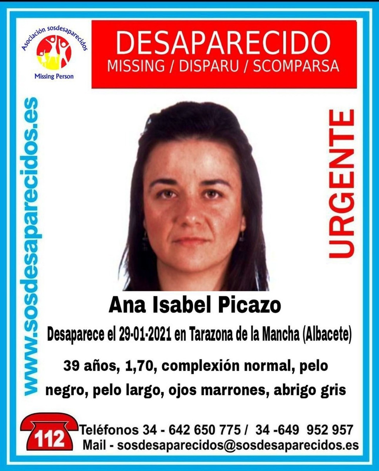 La Guardia Civil ha pedido ayuda para encontrar a Ana Isabel Picazo, una mujer de 39 años que desapareció el pasado 29 de enero en Tarazona de la Mancha (Albacete).