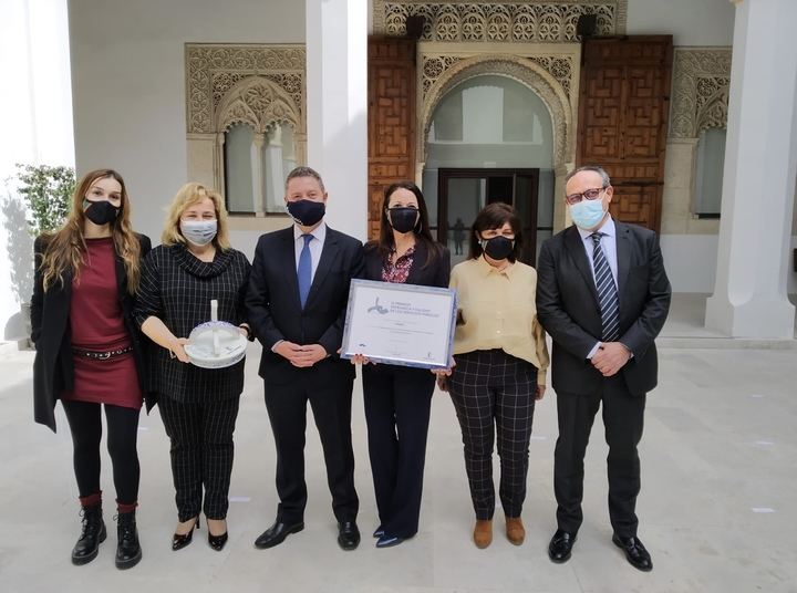 Por las limitaciones de aforo y para poner en valor a los técnicos, que en el día a día son los artífices del proyecto, desde el Ayuntamiento se eligió a Montserrat Gutiérrez Cobo como técnica de la biblioteca municipal que trabaja con los escolares dentro del programa para que subiera a recoger el galardón de la mano del presidente regional, Emiliano García Page y diversos consejeros regionales.