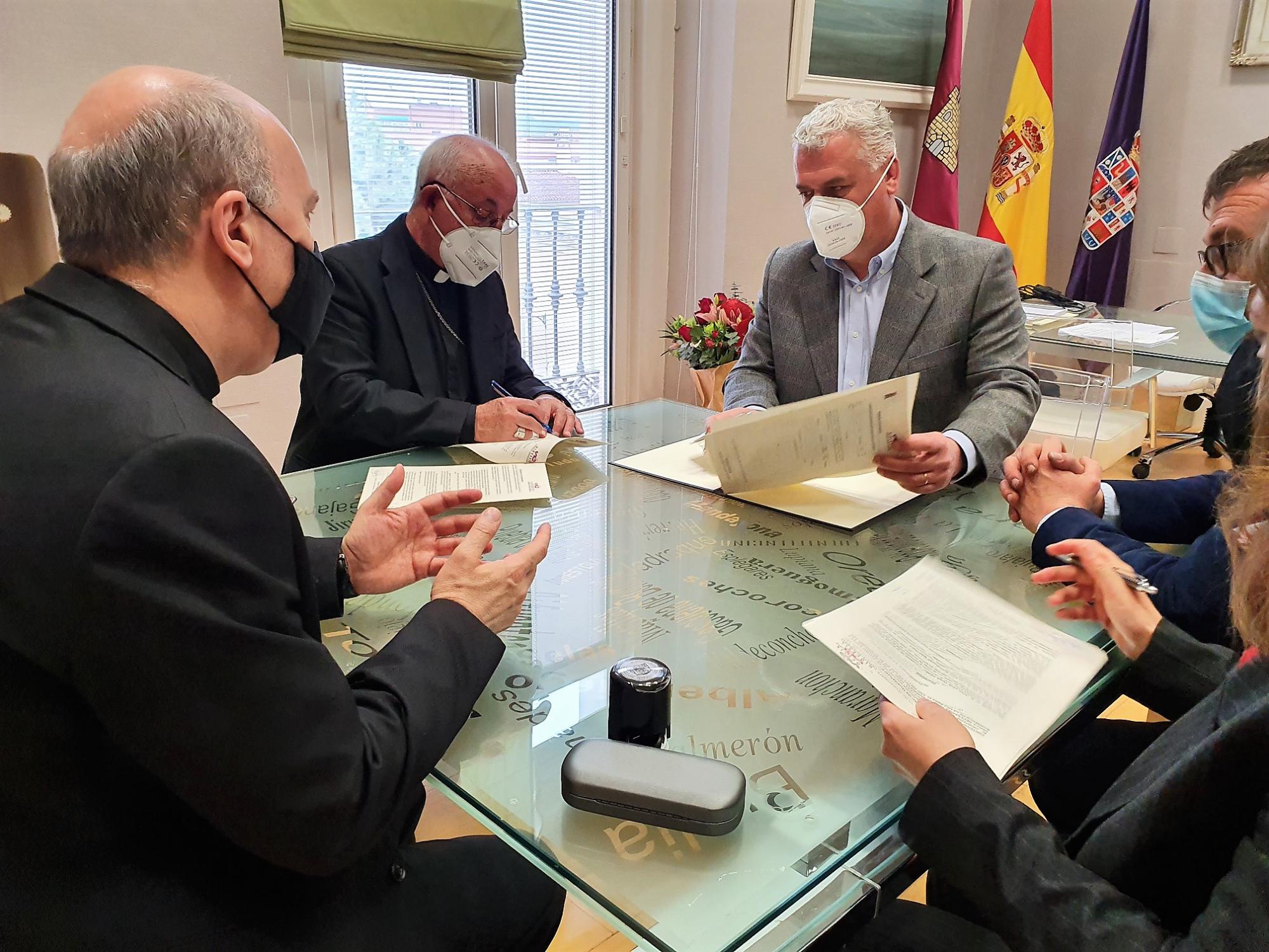 El presidente de la Diputación de Guadalajara, José Luis Vega, y el obispo de la Diócesis de Sigüenza-Guadalajara, Atilano Rodríguez, han firmado un convenio para eliminar la línea eléctrica de media tensión que abastecía de energía al Santuario del Barranco de la Hoz y la hospedería anexa, y sustituirla por paneles solares.