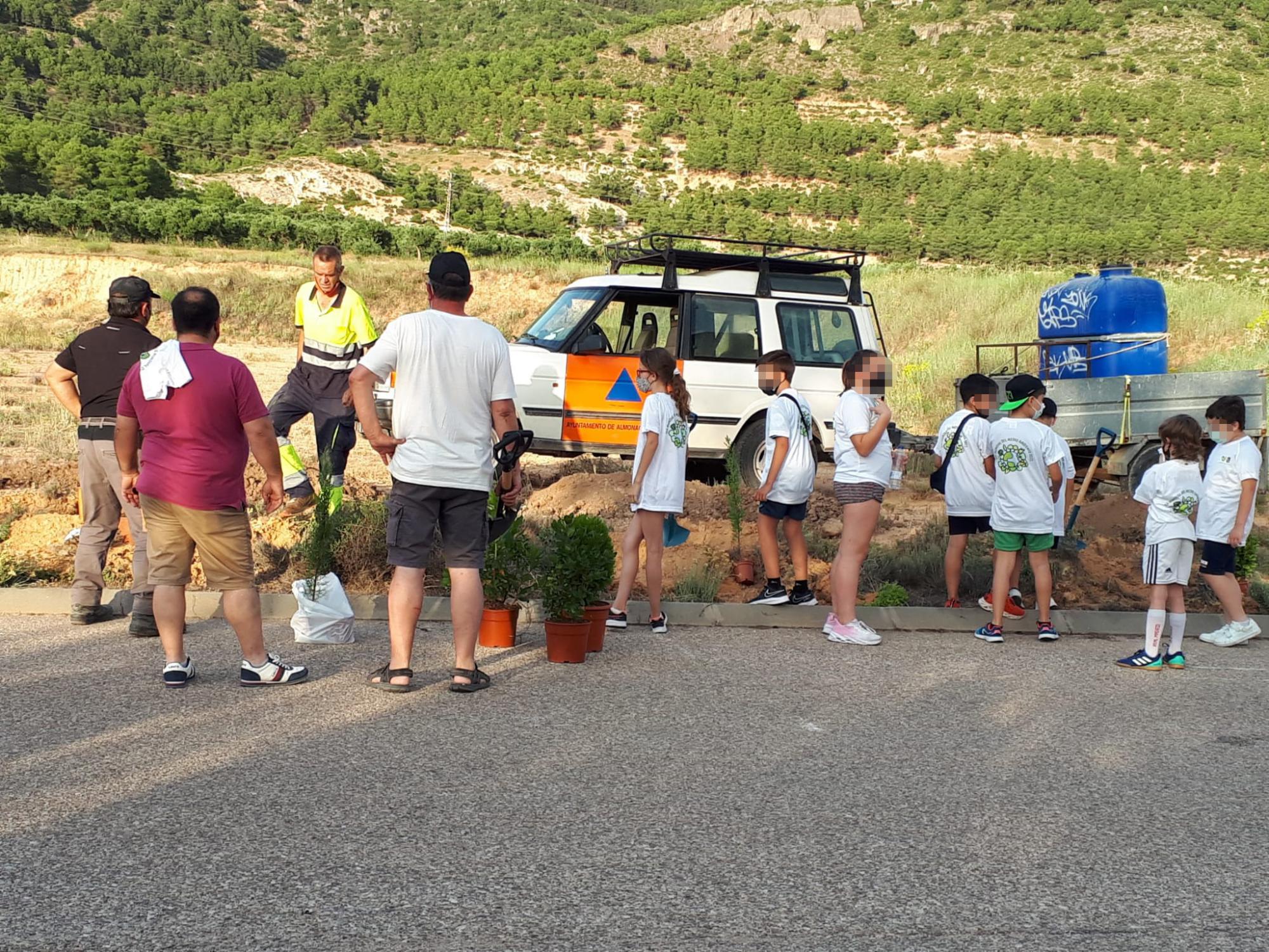En primer lugar, el pasado día 14 de junio, el Ayuntamiento de Almonacid convocó una actividad de plantación de árboles, a la que invitó a participar a niños y niñas de entre 10 y 15 años. Los operarios municipales habían preparado de manera previa el terreno.