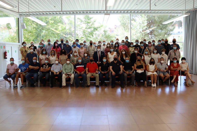 El Centro de Ocio Río Henares ha acogido este jueves, 15 de julio, el acto para la funcionarización de 53 plazas de personal laboral del Ayuntamiento de Azuqueca. Además de la presencia de los trabajadores y trabajadoras que se han acogido a este proceso, también ha asistido el alcalde azudense, José Luis Blanco; la concejala de Desarrollo Saludable, Charo Martín; el edil de Derechos y Libertades, David Pinillos; las portavoces de los grupos municipales de IU, María José Pérez, y del PP, Aure Hormaechea, y también el portavoz de Cs, Manuel Delgado; los presidentes de la Junta de Personal, Alberto Lacaci, y del Comité de Empresa del Ayuntamiento, Jesús Campos, y la interventora y la secretaria municipales, además de representantes municipales y provinciales de los sindicatos CCOO (Elena Sanz), UGT (Yolanda Hermosilla) y CSIF (Pilar Fernández).