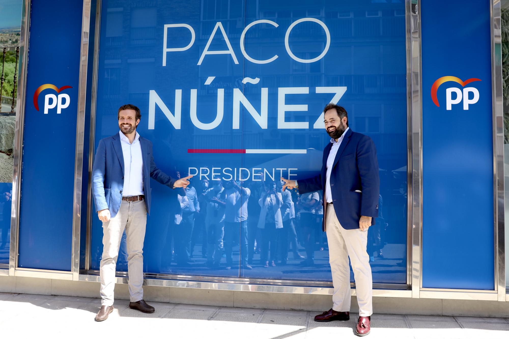 El presidente del PP-CLM, Paco Núñez, inaugura, en Toledo, la nueva sede del Partido Popular junto al presidente nacional, Pablo Casado