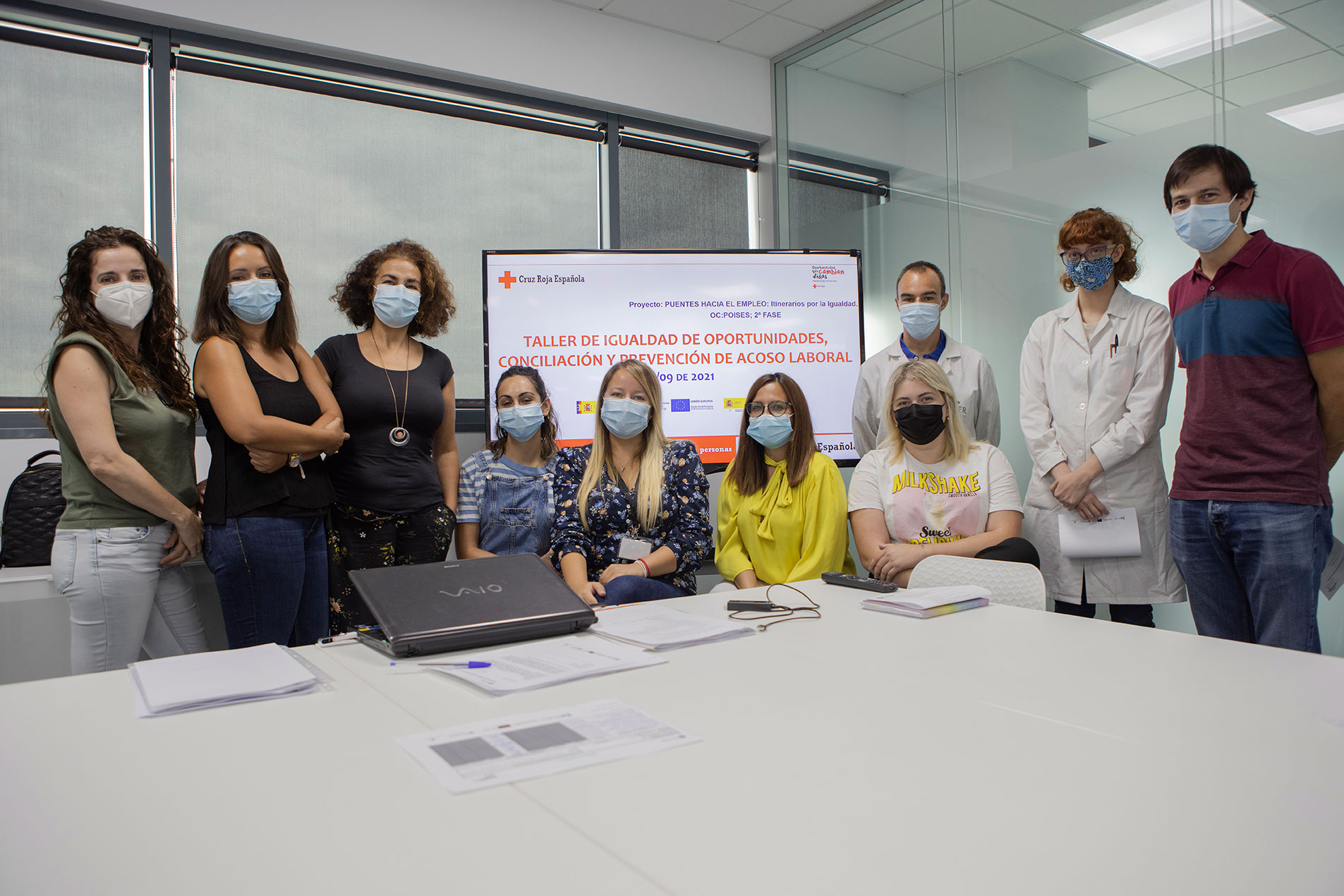 Un ejemplo de esta campaña son los talleres impartidos durante el mes de septiembre por el personal técnico de Cruz Roja Guadalajara en la empresa MIXER & PACK, ubicada en Cabanillas del Campo (Guadalajara). Se trata de talleres sobre Igualdad de Oportunidades, Conciliación y Prevención de Acoso Laboral impartidos al personal de la empresa, en el marco de intervención del Proyecto Puentes hacia el empleo: itinerarios por la igualdad.