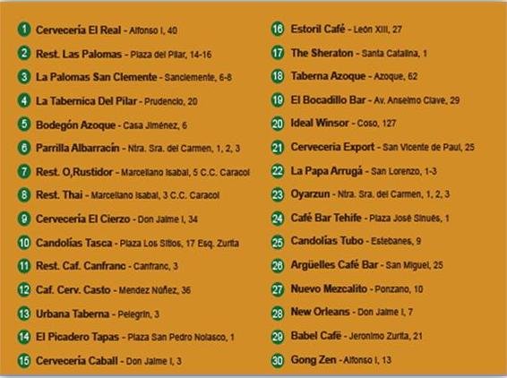 Además, para premiar la participación de los vecinos en la Ruta de la Tapa, se ha sorteado una comida o cena (a elegir) para dos personas en uno de los establecimientos participantes en el concurso, seleccionado por el ganador y cuyo importe máximo será de 100 €. Como segundo premio, también se ha sorteado entre los vecinos un lote de productos Mahou.