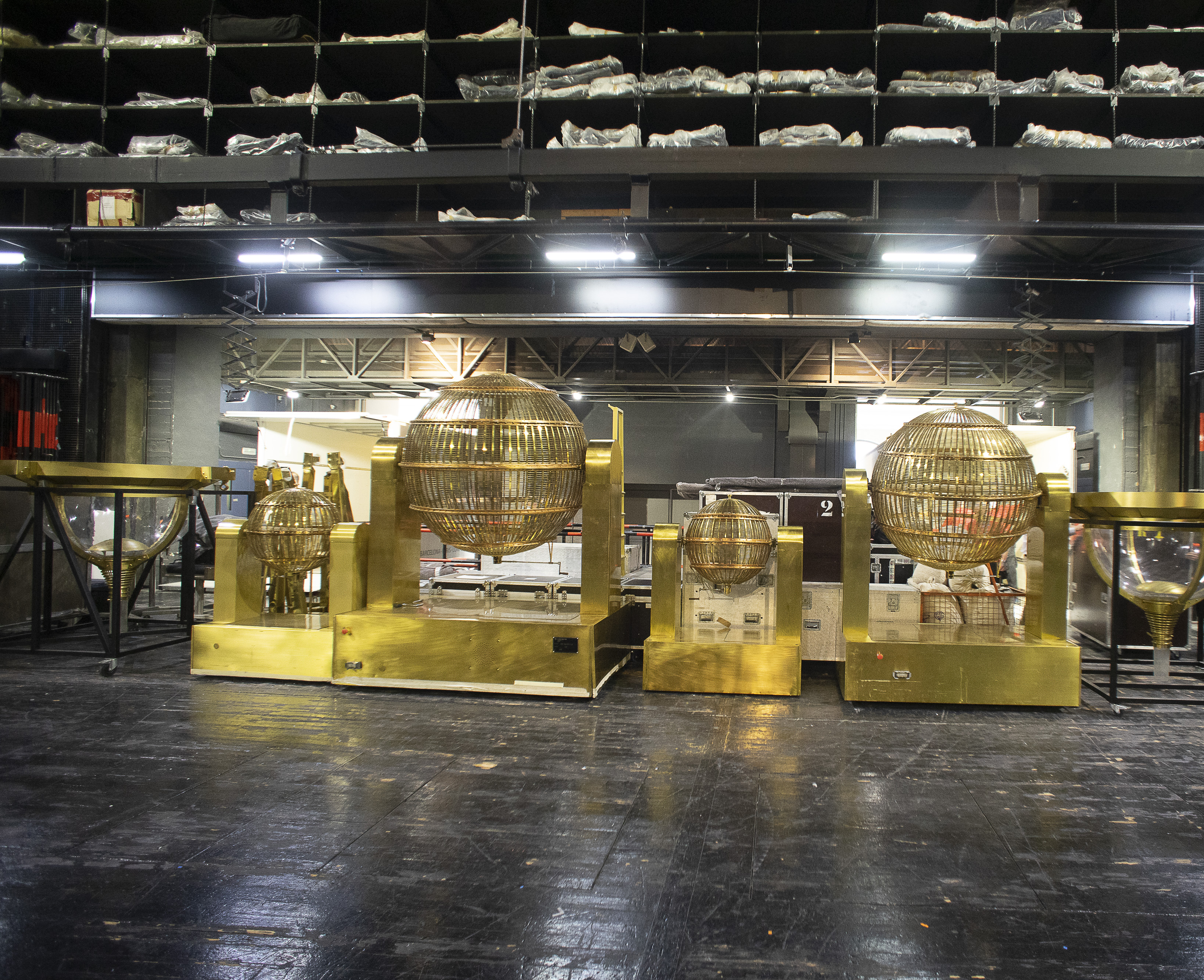 Todos los elementos que intervendrán en el Sorteo Extraordinario de Navidad de este año permanecen en la planta menos dieciséis del Teatro Real, hasta la madrugada del 21 de diciembre, cuando subirán al escenario para ultimar los detalles finales antes del Sorteo. Están custodiados bajo estrictas medidas de seguridad durante las 24 horas del día.