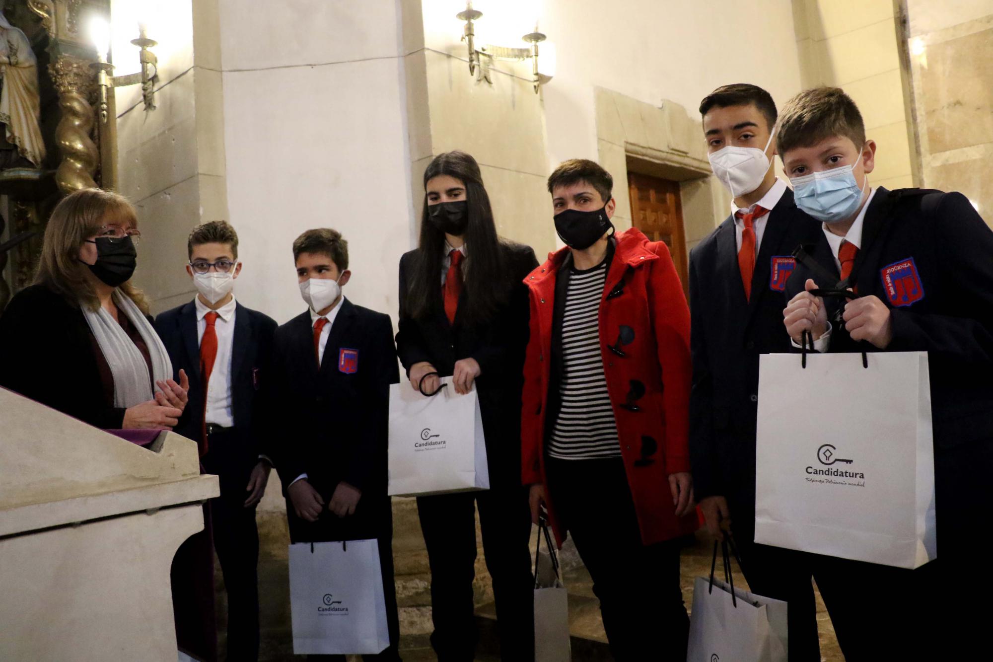 A continuación, cinco niños y niñas de la Banda de Música, tomando como referencia a un nuevo miembro imaginario, Jesús, que se incorporaba a la formación, le explicaban en el pregón cómo es la Navidad Seguntina. Dirigidos por Leire Hernando (clarinete) los pregoneros fueron diciendo qué le enseñarían.