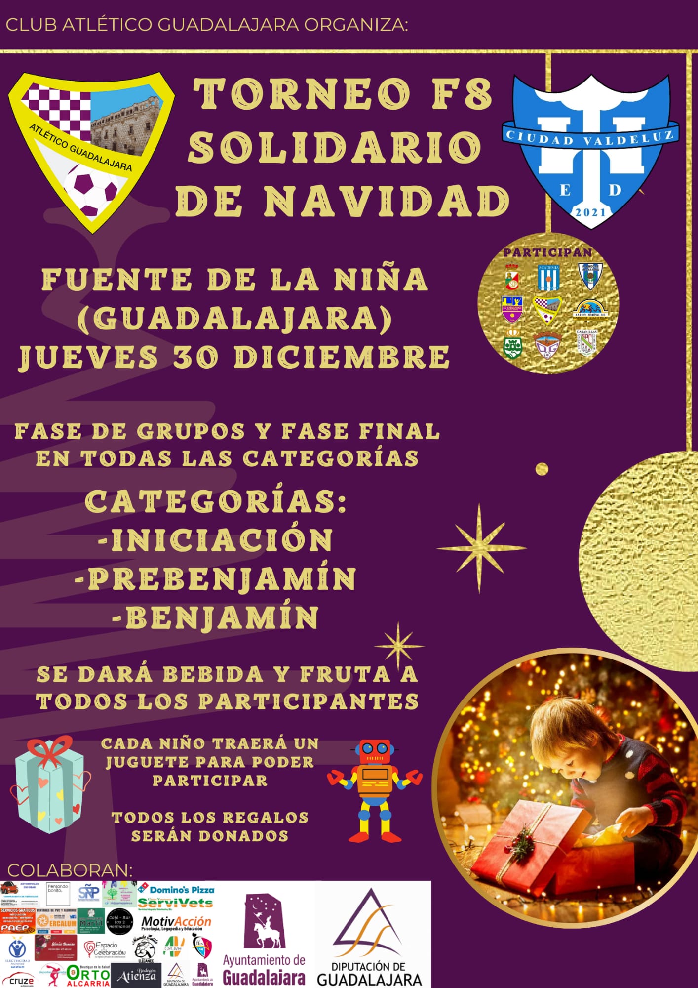El pasado jueves 30 de diciembre, los campos de la Fuente de la Niña fueron testigos del I Torneo F8 Solidario de Navidad organizado por el Atlético Guadalajara, en el que hasta 9 clubes y 20 equipos participaron. La jornada estuvo marcada por la solidaridad de todos los participantes, que donaron un juguete para causas benéficas.