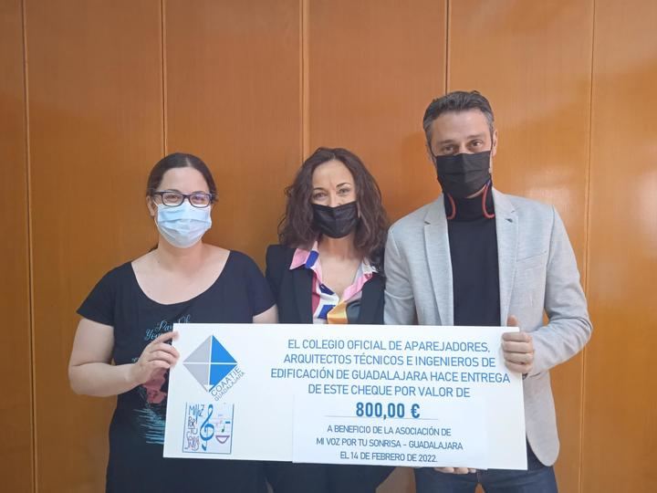 El Colegio de Aparejadores, Arquitectos Técnicos e Ingenieros de Edificación de Guadalajara (COAATIE) ha donado la cantidad de 800 euros a la organización Mi Voz por tu Sonrisa.