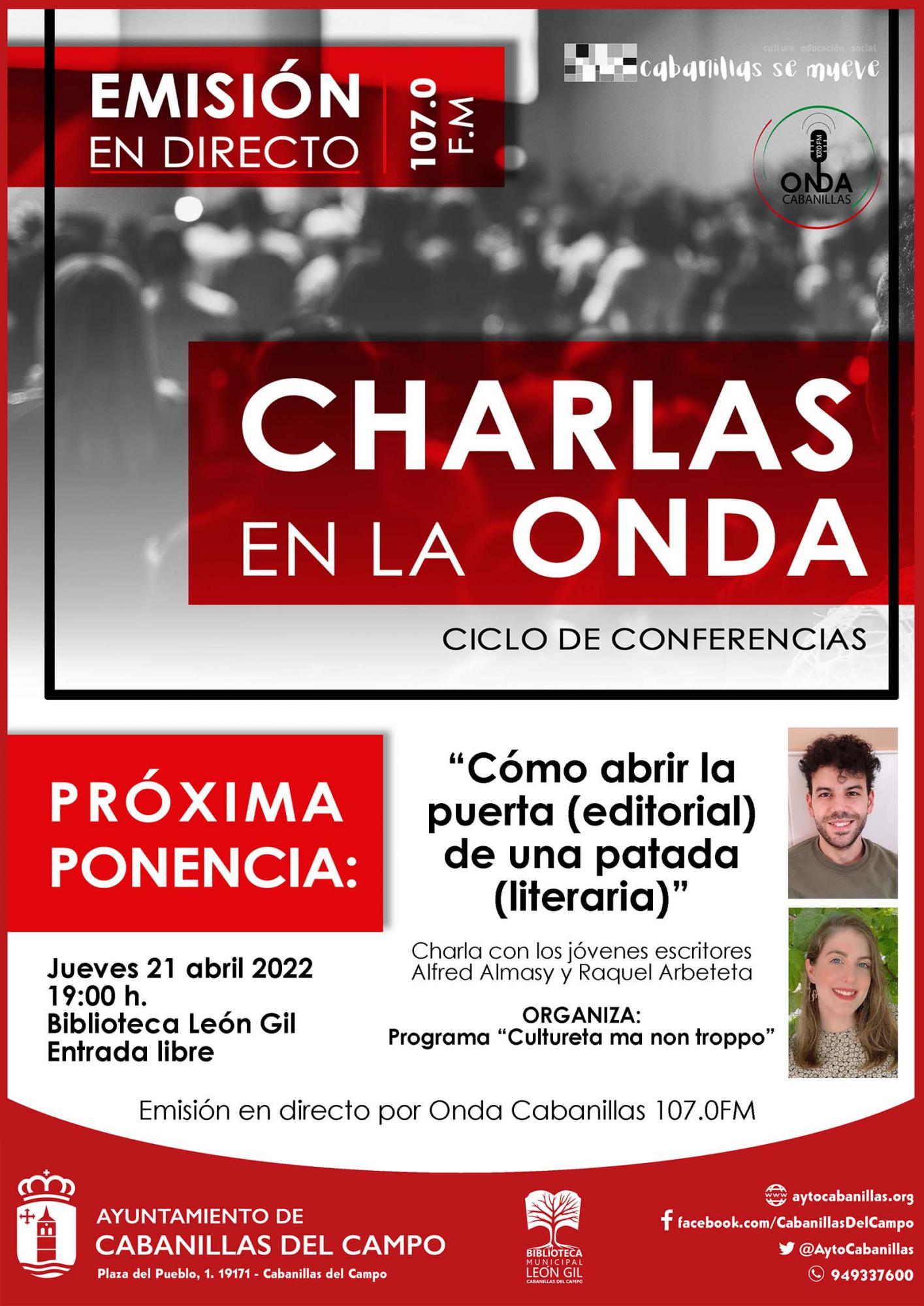 Nueva cita con las «Charlas en la Onda», el ciclo de conferencias que organiza en la Biblioteca Municipal de Cabanillas la emisora Onda Cabanillas, con una charla cada mes, organizada por uno de los programas de la emisora.