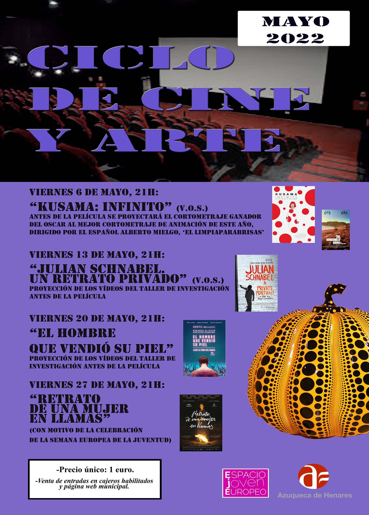 Ciclo de Cine y Arte. Con proyecciones los viernes del mes de mayo, a las 21 horas, en la sala del Espacio Joven Europeo (EJE). Precio de las entradas: 1 euro (a la venta en esta web –AQUÍ- y en los cajeros ciudadanos).