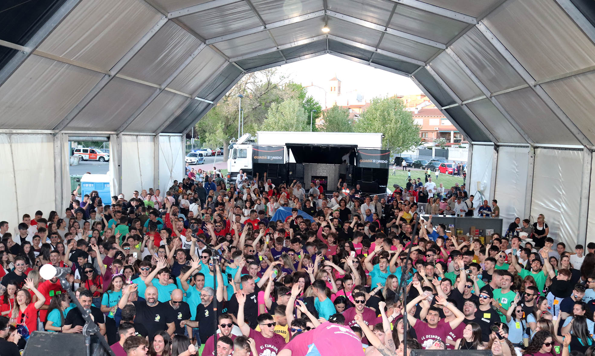 A las 7 y media de la tarde, la marea de camisetas multicolores de las peñas abarrotaba la Plaza del Pueblo, y comenzaba a bailar al son de las dos charangas que amenizaron la tarde: «Imparables » y «La Joven Mafia». Tras unos minutos de baile en la plaza, una de las charangas abrí el desfile, mientras la otra lo cerraba en la cola. Y en el medio, la gran multitud de peñistas vibraba con una alegría que no se recordaba en unas fiestas de primavera.