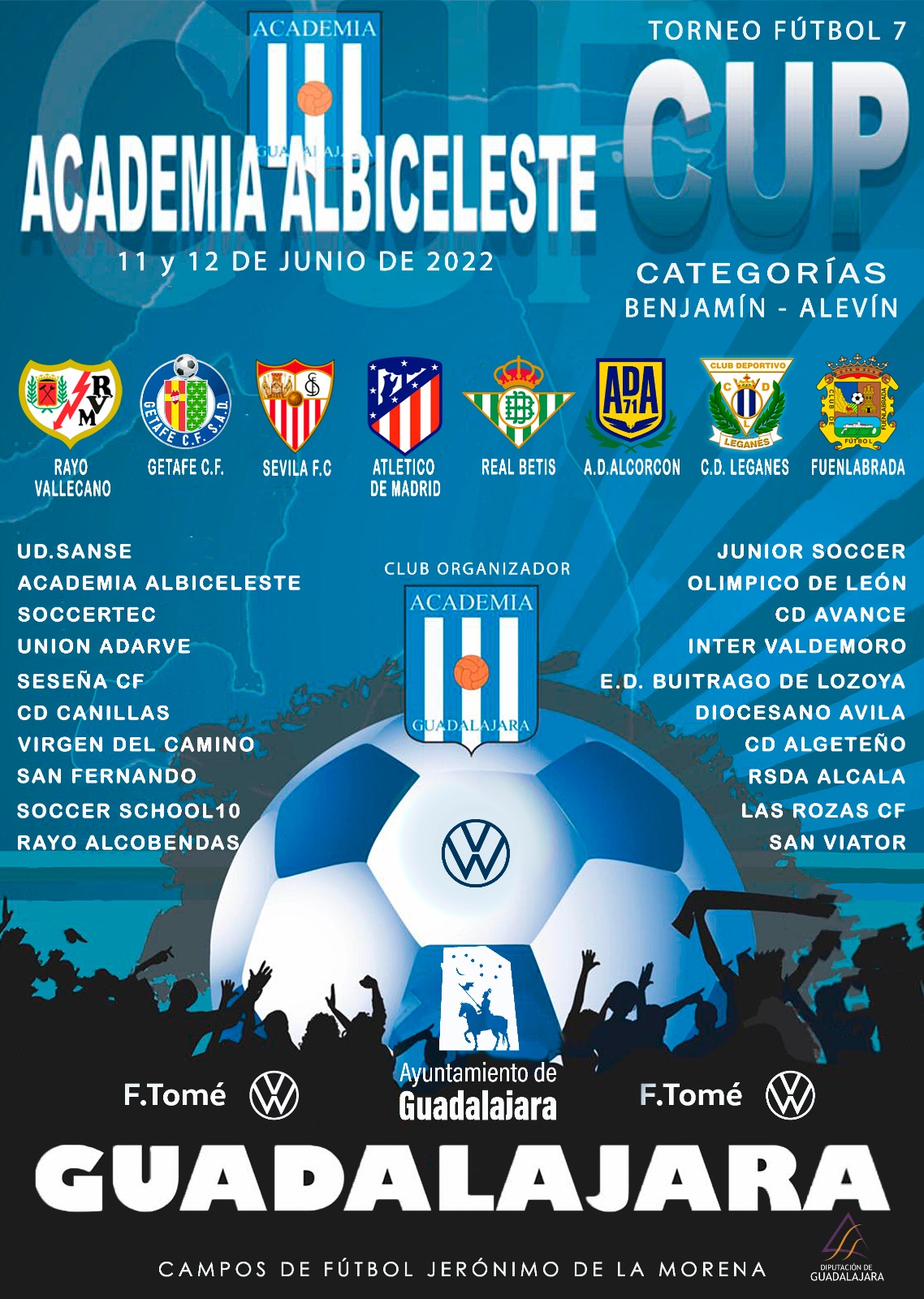 Los días 11 y 12 de junio, y organizado por el C.D. Academia Albiceleste y la colaboración del Ayuntamiento de Guadalajara, se celebra en las instalaciones municipales del complejo deportivo, Jerónimo de la Morena, el Torneo Academia Cup 2022.