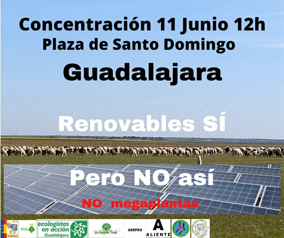 Unidas Podemos-Izquierda Unida de Guadalajara se suma a la concentración "Renovables sí, pero no así: no megaplantas" este sábado, 11 de junio en la Plaza de Santo Domingo