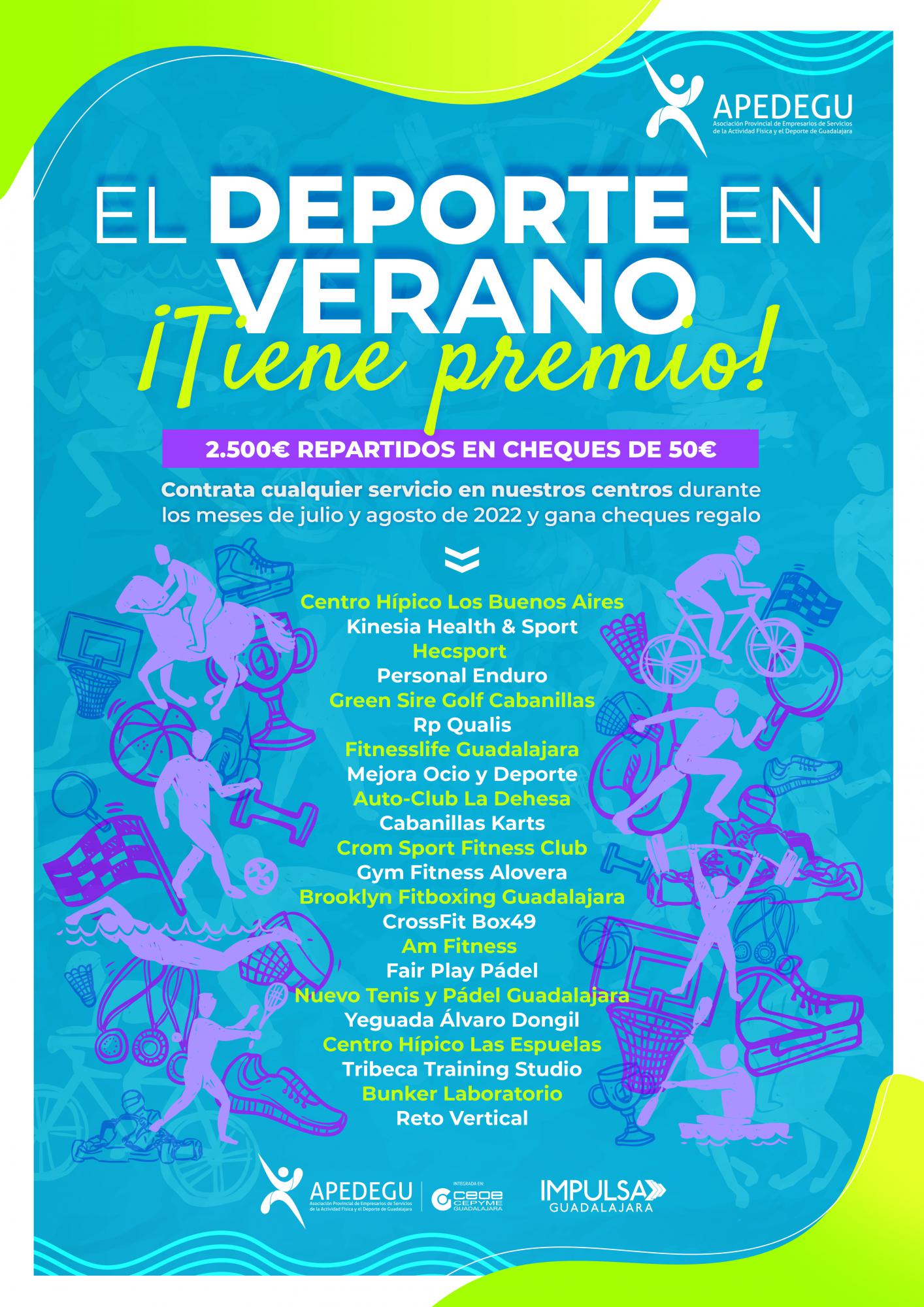 La Asociación provincial de Empresarios de Servicios de la Actividad Física y el Deporte de Guadalajara (APEDEGU), integrada en CEOE-CEPYME Guadalajara, ha presentado su campaña “El deporte en verano tiene premio”, con el objetivo de dinamizar este sector en unos meses donde la demanda es menor, sobre todo en toda actividad realizada en espacios cerrados.