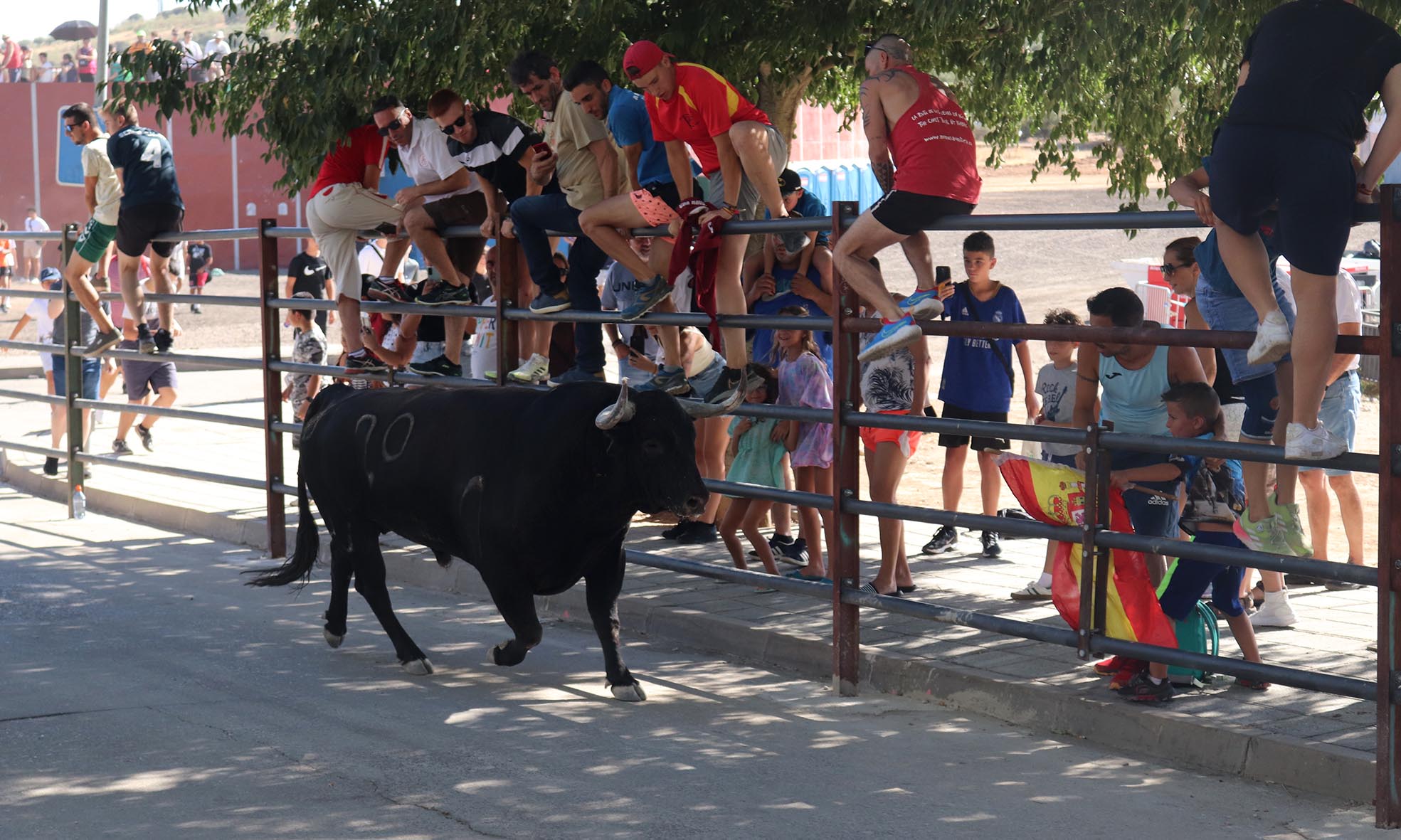 El segundo festejo taurino de las Fiestas de Cabanillas, celebrado en la tarde de este sábado 23 de julio, comenzó de modo muy monótono, pero se animó sobremanera en la recta final de la celebración del encierro, gracias al toro «Proyectil», un precioso morlaco cárdeno, de la ganadería talaverana de Peñajara y casta Jijona, que tuvo mucha movilidad y recorrido, y permitió bonitas carreras y quiebros a lo largo del nuevo recorrido acotado por las calles de la localidad.
