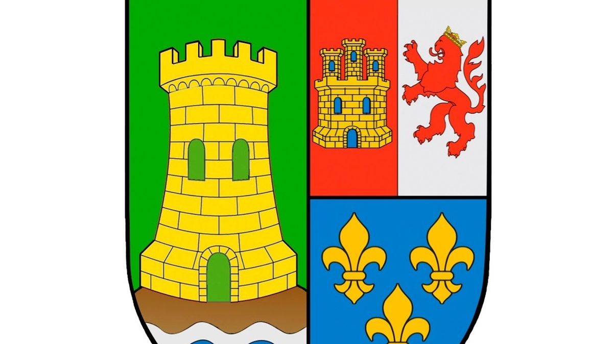«Escudo español, partido. Primero de sinople una torre de oro aclarada del campo, sobre un monte en su color, y en la punta un ondeado de azur y plata. Segundo, partido y medio cortado, con un castillo de oro en campo de gules, un león rampante de gules en campo de plata, y tres flores de lis de oro bien puestas sobre campo de azur. Al timbre, la corona real de España».