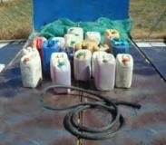 Una vez realizada la correspondiente inspección ocular en el lugar de los hechos, los agente comprobaron que los tapones de los depósitos del combustible habían sido forzados y que, mediante unas gomas, estaban trasvasando el gasoil a unos bidones.