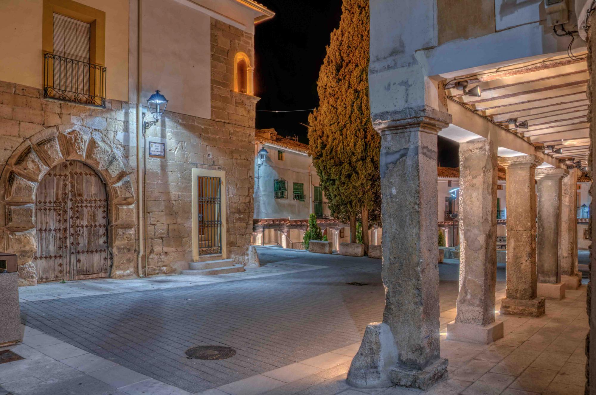 En su trazado urbano, una parada obligada es su plaza soportalada, que se constituye como una de las más bellas y singulares de la provincia de Guadalajara. En la misma, el caminante se puede deleitar con su fuente centenaria –de la que nunca ha dejado de manar agua–; con la torre del Reloj –que preside el conjunto–; o con la iglesia parroquial, dedicada a Santo Domingo de Silos.