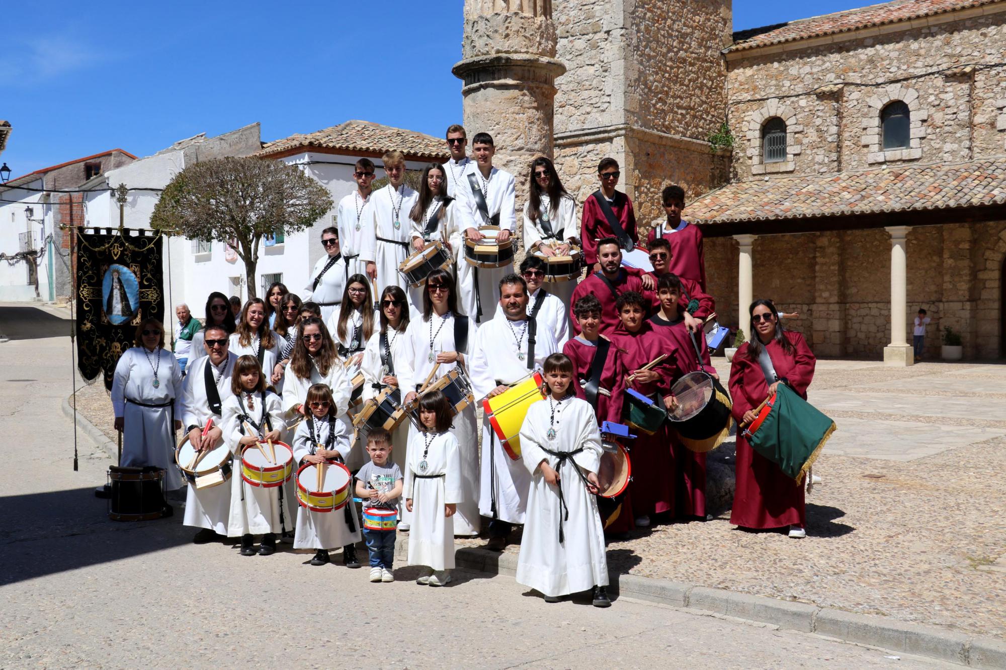 La Banda de Cornetas y Tambores de la Cofradía de la Virgen de la Soledad ha hecho sonar, durante una hora, tambores y timbales en la mañana de Viernes Santo, en la que ha sido su VI Edición, acompañada, este año, por varios integrantes de la Cofradía del Santo Sepulcro de Almoguera