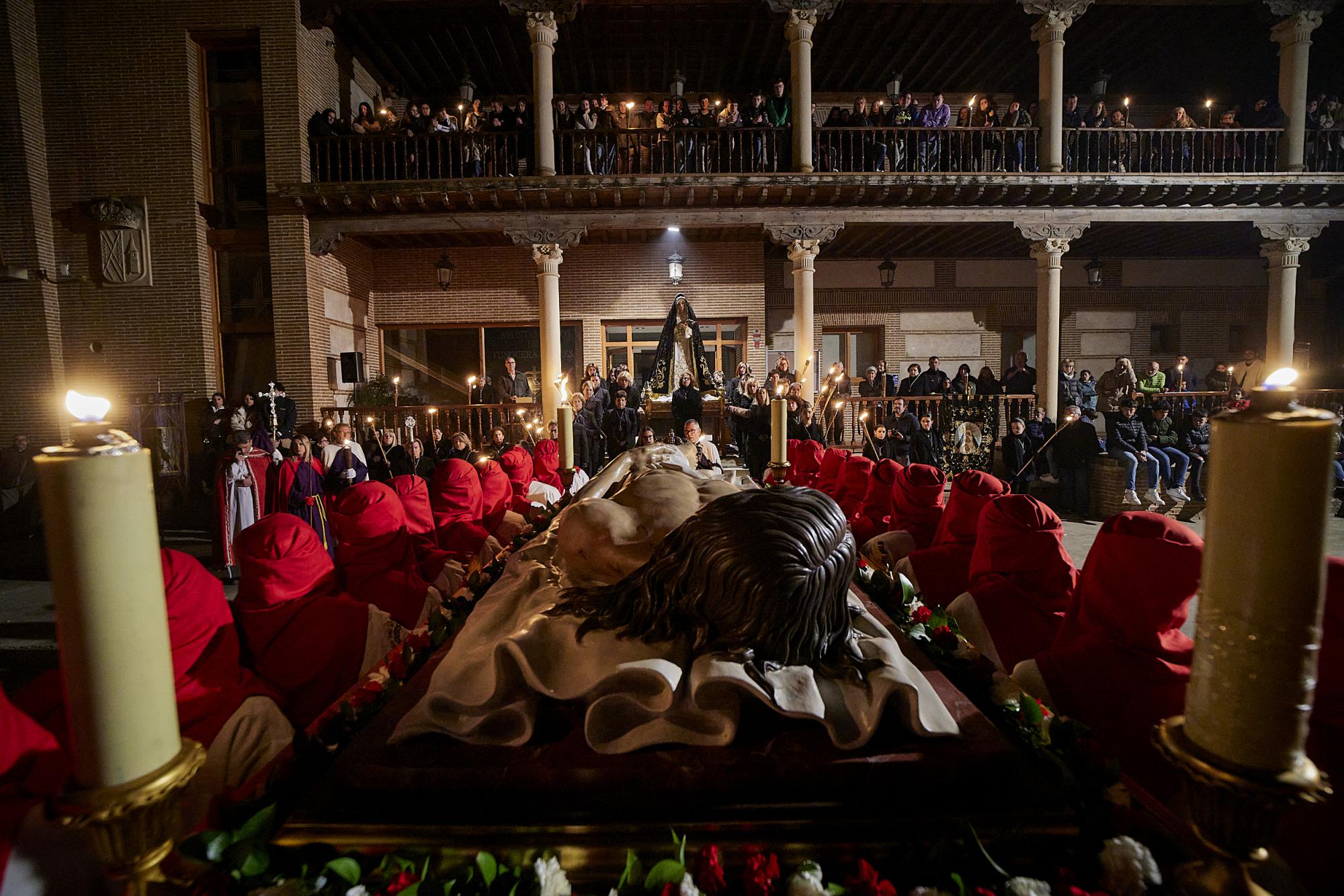 La imagen de "El Santo Entierro" es portada por cincuenta anderos con túnica blanca y capuchón rojo. La talla fue elaborada por el escultor madrileño J.A. Arnáiz y el taller de Artemartínez de Horche. La Banda de la Soledad va marcando un paso solemne ante la atenta mirada de los vecinos que portan sus velas. Esta solemnidad se interrumpe con el toque de trompeta para efectuar levantadas del paso.