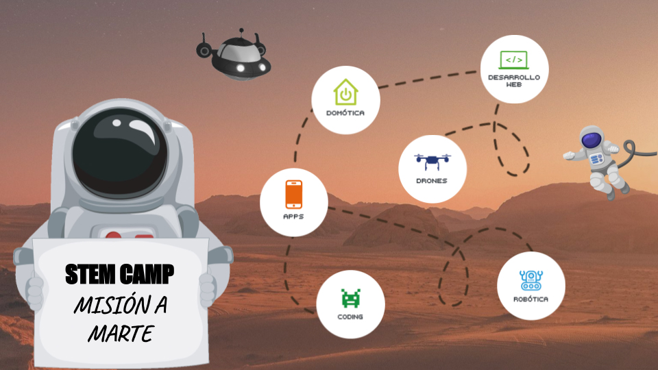 Durante los días que dura el campus de Robótica y STEM (Ciencia, Tecnología, Ingeniería y Matemáticas, por sus siglas en inglés) los niños se sumergirán en un Campus Temático que hace de hilo conductor entre talleres interdisciplinares de nuevas tecnologías. En esta edición viajarán a Marte y todos juntos descubrirán que La Tierra pronto no será habitable y que ¡el planeta rojo podría ser la salvación!