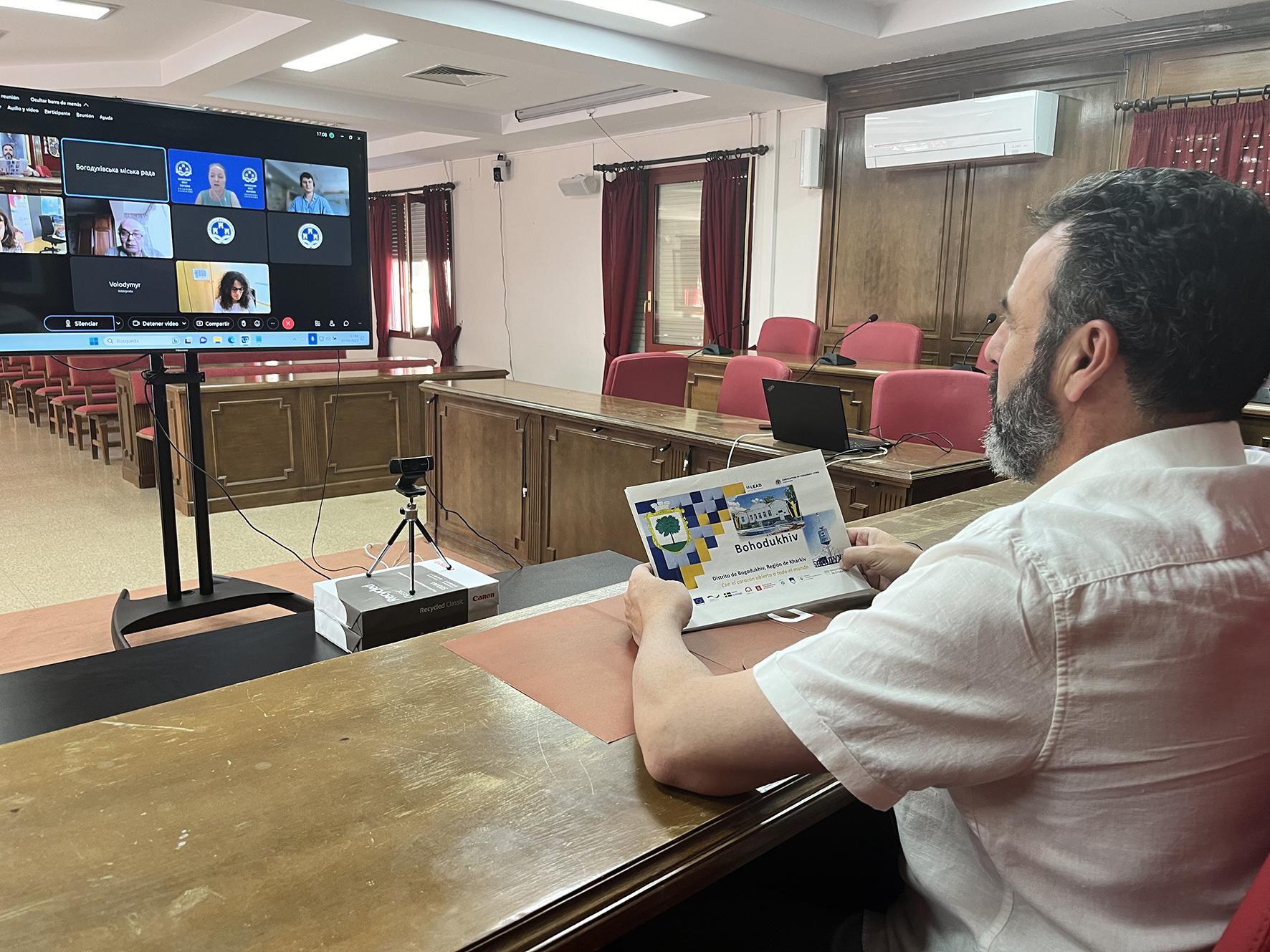 Con el fin de buscar soluciones, una delegación ucrania, integrada por dos personas de Bohodukhiv, visitará Azuqueca este otoño (a finales de septiembre o primeros de octubre). De cara a ese encuentro presencial, el alcalde azudense ha mostrado su disposición a "colaborar no sólo para buscar solución a los efectos negativos de la guerra, sino para conseguir una mejora de las dos localidades". José Luis Blanco ha ofrecido la colaboración de los técnicos municipales de Azuqueca de Henares, ha planteado la posibilidad de que una delegación azudense viaje también a Ucrania y ha puesto sobre la mesa la posibilidad de organizar intercambios de escolares de ambos países -cuando las condiciones lo permitan- , al tiempo que ha destacado la importancia de que la colaboración se extienda a las empresas.