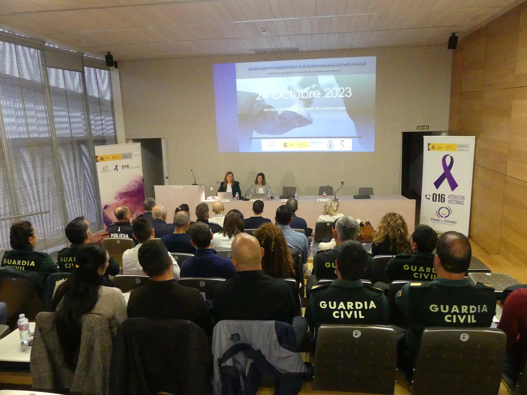Un total de 35 integrantes de la Guardia Civil, Policía Nacional y policías locales de diferentes ayuntamientos de la provincia han participado en una jornada formativa sobre atención a víctimas de violencia de género, organizada por la Unidad contra la Violencia sobre la Mujer de la Subdelegación del Gobierno de España en Guadalajara. Esta actividad, financiada con cargo a los fondos del Pacto de Estado contra la Violencia de Género, abre la programación preparada por la Unidad de cara al 25 de noviembre, Día Internacional para la Eliminación de la Violencia contra las Mujeres.