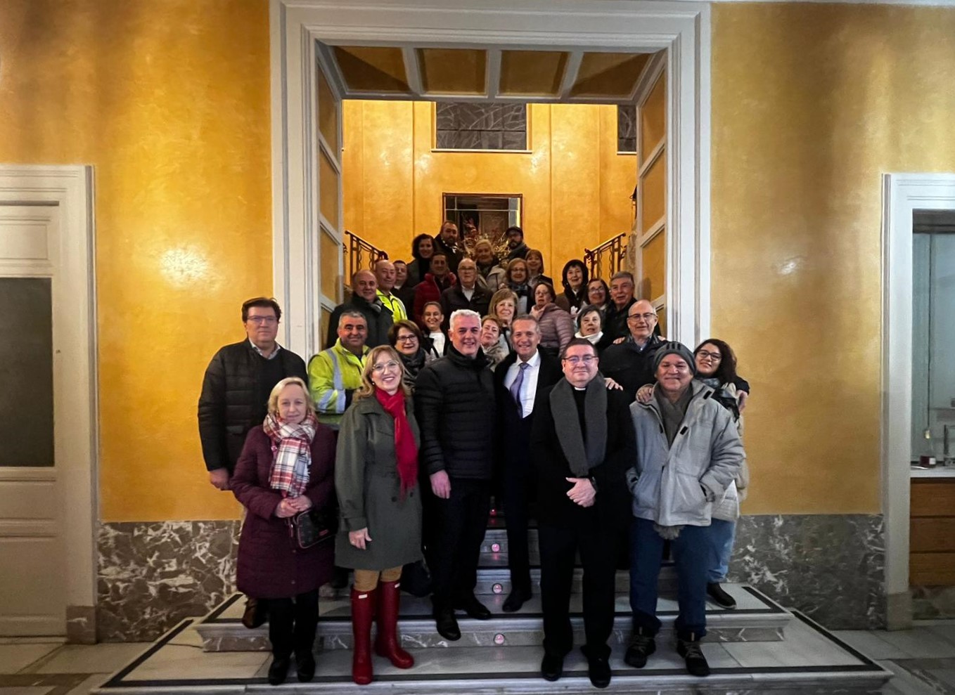El presidente de la Diputación de Guadalajara, José Luis Vega, y la Junta Directiva de la Asociación de Belenistas de Guadalajara han inaugurado, con la bendición del párroco de San Nicolás, Juan Antonio Fernández, el tradicional belén de la Institución Provincial, instalado en los jardines de la Casa Palacio.