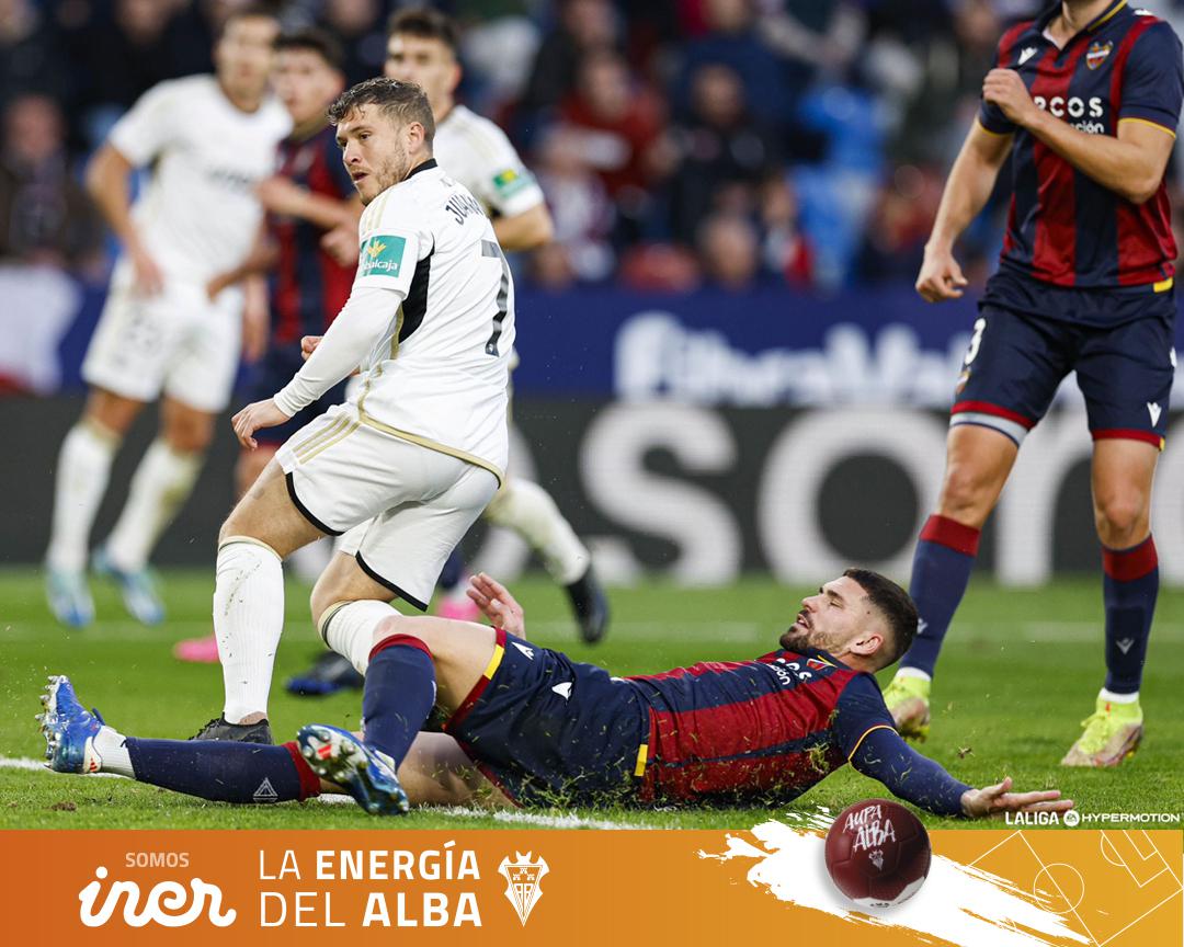 El Levante también supo rehacerse y antes del minuto 80 se puso por delante con un tanto de Bouldini. El Alba no dijo la última palabra y a punto estuvo de hacer gritar a sus locos. En el 95 el larguero impidió el doblete de Higinio. Y el punto que se mereció este grupo.