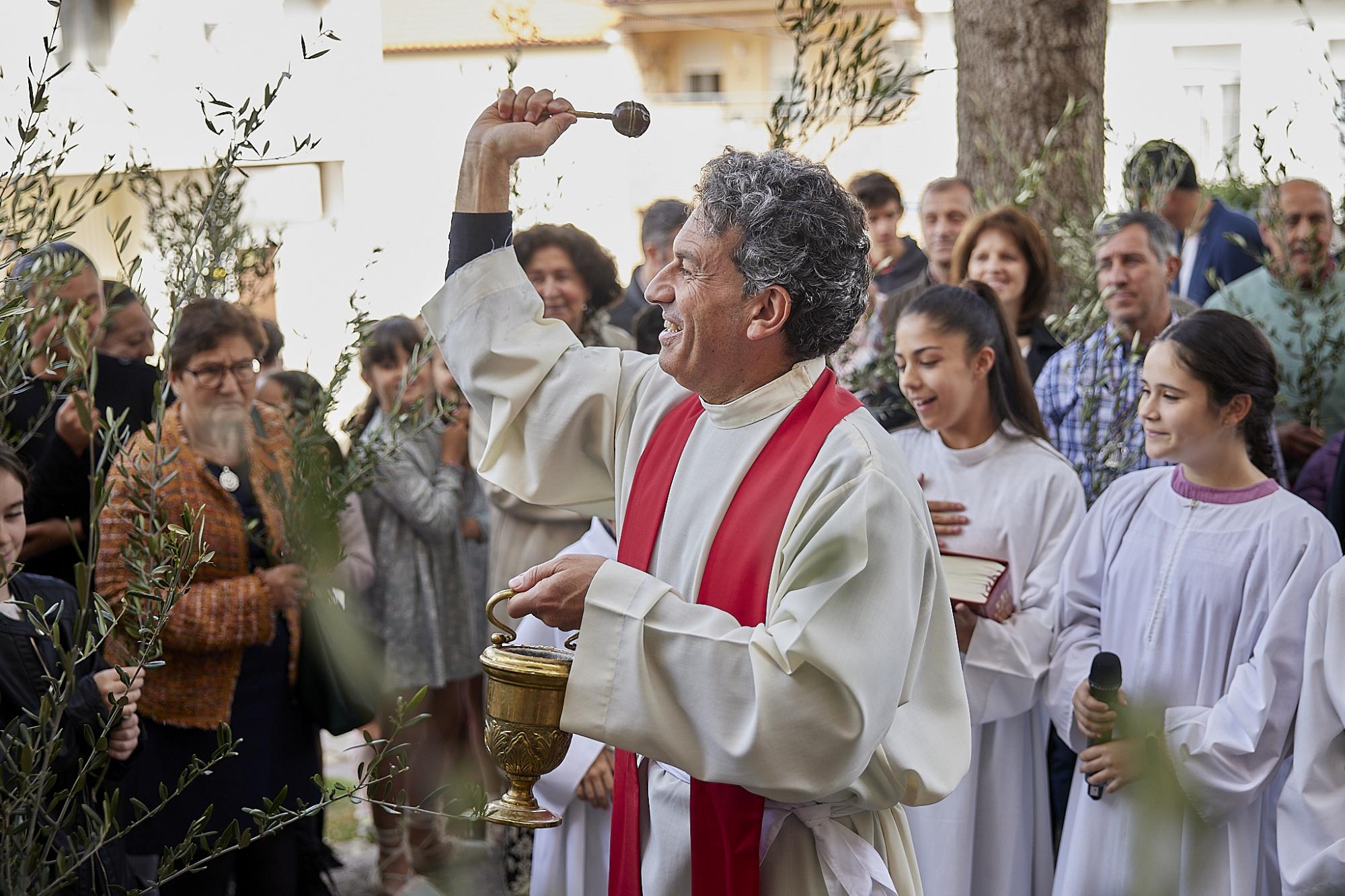 El Domingo de Ramos comenzaba con la bendición de los ramos en la Plaza de la Iglesia seguida de la procesión y Solemne Eucaristía oficiada por el párroco José Benito.