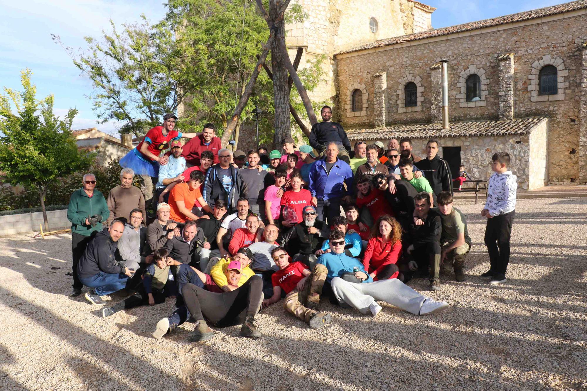 La primera dificultad fue la de meter el mayo en la plaza. Por sus dimensiones, fue una tarea complicada. Allí estaban preparadas las dos “cabrillas”, o palos, también de chopo, cruzados, con diferente altura, que, empujados por la fuerza del pueblo, unida en la voz de José Luis, fueron levantando, poco a poco, el mayo, hasta dejarlo puesto, cuando aún brillaba el sol. José Luis vive esta tradición desde el principio hasta el final, ayer día 1 de mayo, con la barbacoa que comparte el pueblo, y aún recuerda cómo era el palo que puso su quinta, “enorme”, según lo describe, y también que antes se ponía junto a La Picota, y no detrás de la Iglesia.