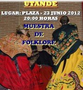 Una selección de alumnos de las áreas de Música y Danza de la Escuela Provincial de Folklore de la Diputación de Guadalajara ofrecerá una muestra de folklore el próximo sábado, 23 de junio, en la plaza Mayor de Utande a partir de las 20:00 horas. Bajo la dirección de Sara Moratilla (baile), Antonio Trijueque (dulzaina), José Carlos Esteban (tambor), Begoña Larrañaga (acordeón), Antonio Carmona (canto y cuerda) y Eduardo del Castillo (violín) ofrecerán el siguiente programa : SIGUE