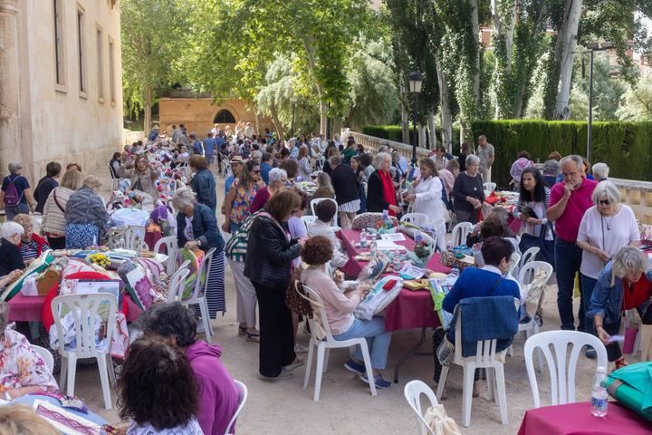 Los jardines del Palacio del Infantado han acogido hoy a casi 400 encajeras llegadas de toda España en el XVII Encuentro Nacional de Encajeras de Bolillos "Guadalajara 2024", organizado por la Asociación provincial de Encajeras en colaboración con el Ayuntamiento de Guadalajara.
