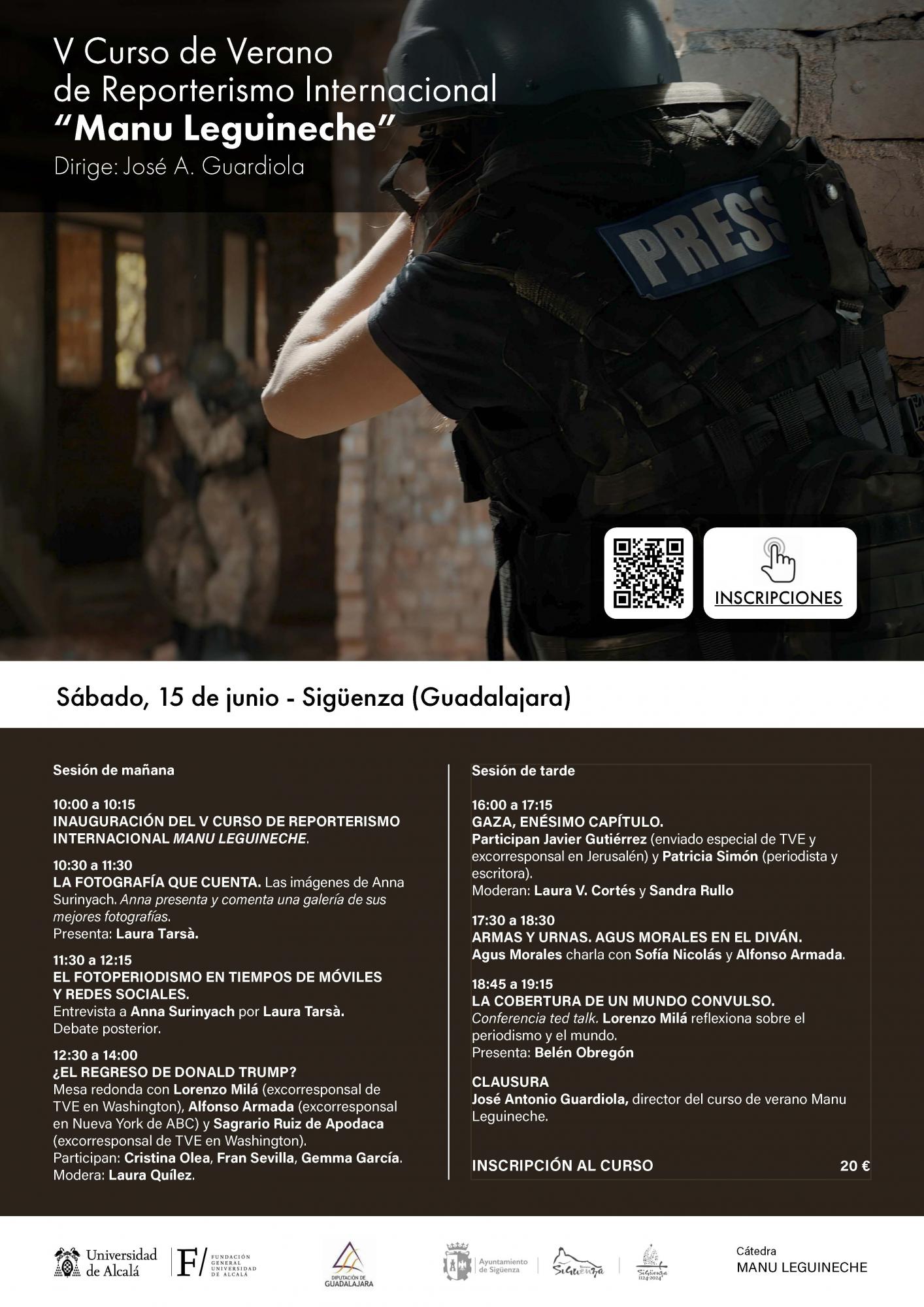 La Cátedra Manu Leguineche de la Fundación General de la Universidad de Alcalá, con el patrocinio de la Diputación de Guadalajara, organiza el próximo 15 de junio en Sigüenza el V Curso de Verano de Reporterismo Internacional.