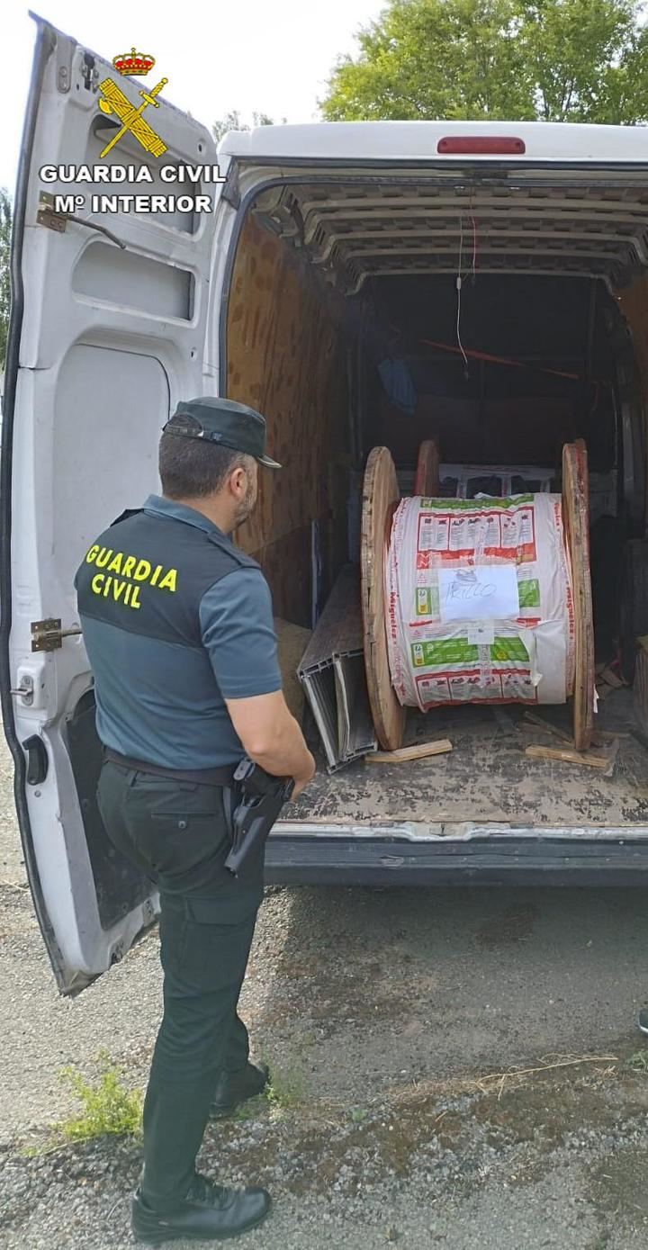 La furgoneta iba ocupada por una persona y transportaba 3 bobinas de cobre de grandes dimensiones, con un peso de 3 toneladas, de las que no pudo acreditar su lícita procedencia.