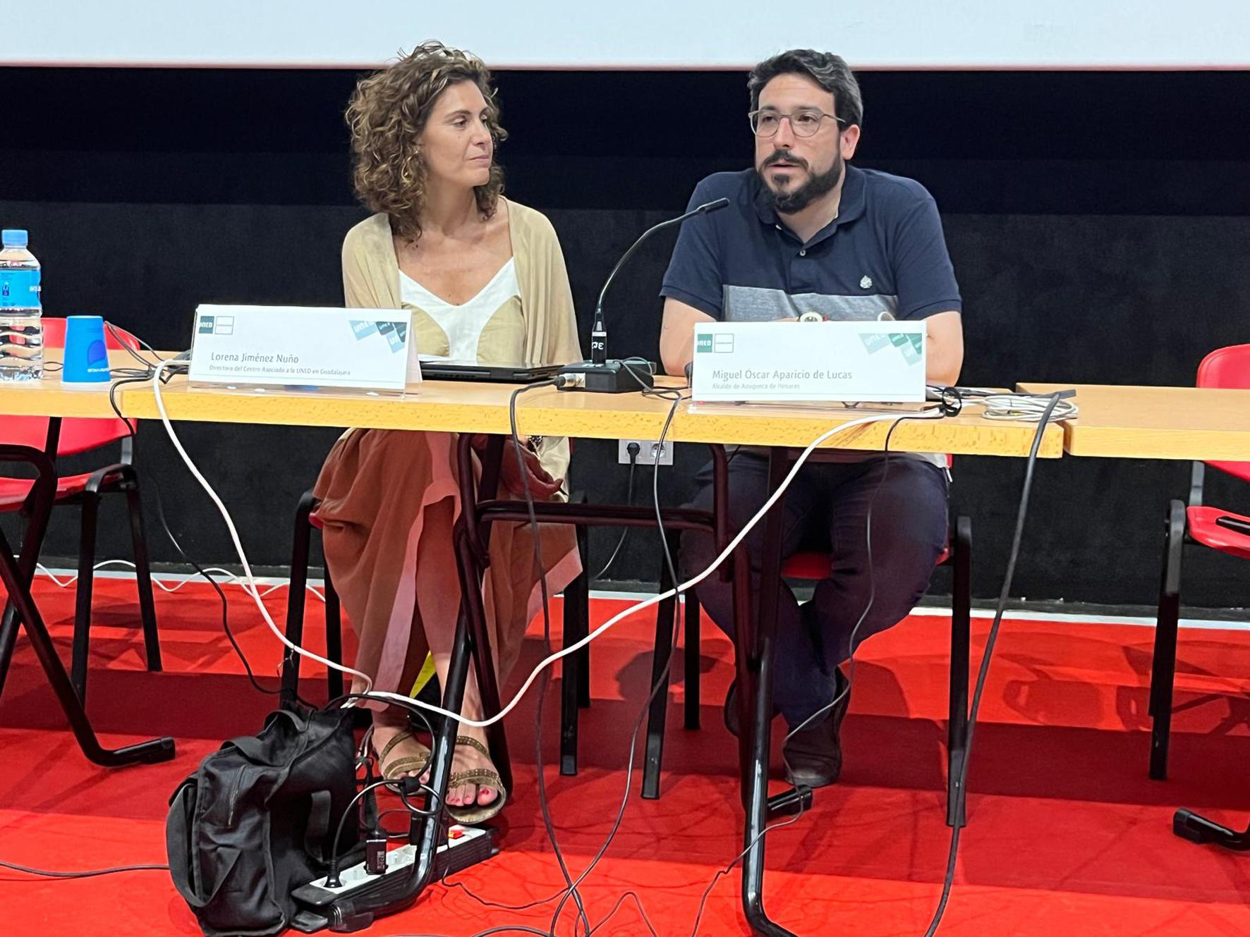 El alcalde de Azuqueca de Henares, Miguel Óscar Aparicio, y la concejala de Educación, Susana Santiago, participaron este lunes, 8 de julio, en la apertura del curso de verano “Trauma, crianza y terapia” que la UNED (Universidad Nacional de Educación a Distancia) imparte de manera presencial en el Espacio Joven Europeo (EJE) –también admite la asistencia telemática-. “La colaboración entre el Ayuntamiento y la UNED permite que Azuqueca cuente con un Aula en el edificio de El Foro con enseñanzas de acceso a la universidad para mayores de 25 años y de idiomas y, esa formación más académica, se completa con otras actividades y programas como UNED Sénior, talleres o este curso de verano”, recordó el regidor. Miguel Óscar Aparicio agradeció la elección de Azuqueca como sede de estas sesiones y destacó “la gran acogida” del curso, que suma un total de 134 personas matriculadas.
