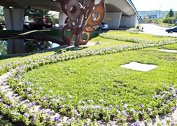 La glorieta de Cuatro Caminos, estratégico punto de entrada a la ciudad, luce en todo su esplendor gracias a la plantación de 2.500 unidades de petunias en todo la superficie. Las flores, de un suave tono malva, imitan el color de la bandera de la ciudad, haciendo un bonito dibujo de alas de mariposa en consonancia con las esculturas que adornan la infraestructura. Este diseño floral está formado por dos hileras de petunias dejando entre ellas un pequeño camino relleno de arena de río. Entre los trabajos de jardinería realizados en este mismo entorno, figuran además los de escarificado y semillado de la rotonda, explica Ana María Manzano, concejal responsable de Parques y Jardines. SIGUE