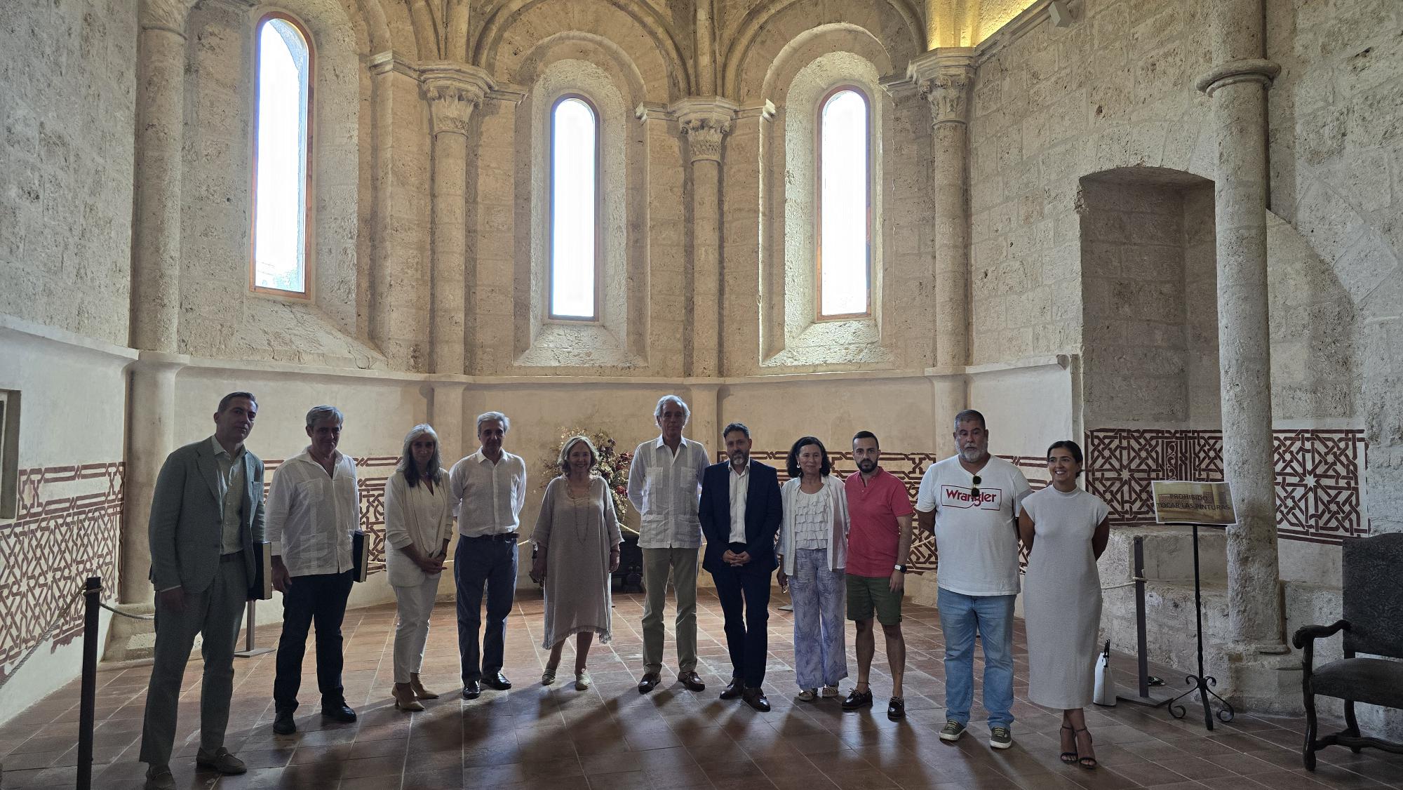 Un acto en la sala noble Jesús Villa-Rojo del Castillo de la Piedra Bermeja en el que han intervenido el alcalde, Luis Viejo; el historiador Antonio Caballero; los hermanos Fidel y Julio Carrasco, responsables de su restauración en 2023; José María Ruiz Gutiérrez, hijo del promotor Jesús Ruiz Pastor; Rocío Álvarez Albizuri, diseñadora del logo; y Jorge Morín de Pablos, director del proyecto del futuro Museo Taurino