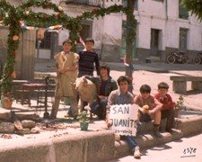 Y, una vez confeccionado el arco a primera hora de la mañana, es hora de que los críos con su cantinela característica de “una pesetita para San Juanito” se lancen a asaltar al transeúnte bandeja o cestillo en mano. Ante la frase petitoria habitual es tradición que el dadivoso ciudadano responda reticente “San Juanito no come” y los niños a coro repliquen “Sí, pero gasta calzones”, consiguiendo la recompensa debida en forma de tintineantes y brillantes monedas, invertidas más tarde, una vez repartidas entre los niños adscritos a cada arco, en chucherías. Un jurado recorre uno por uno cada arco- altar, valorando imaginación y predominio de los elementos naturales, tiempo y simpatía, colocando una nota. El veredicto se emitirá por la tarde, una vez que los arcos, parte de una arquitectura efímera y volátil, desaparezcan a la hora del almuerzo.