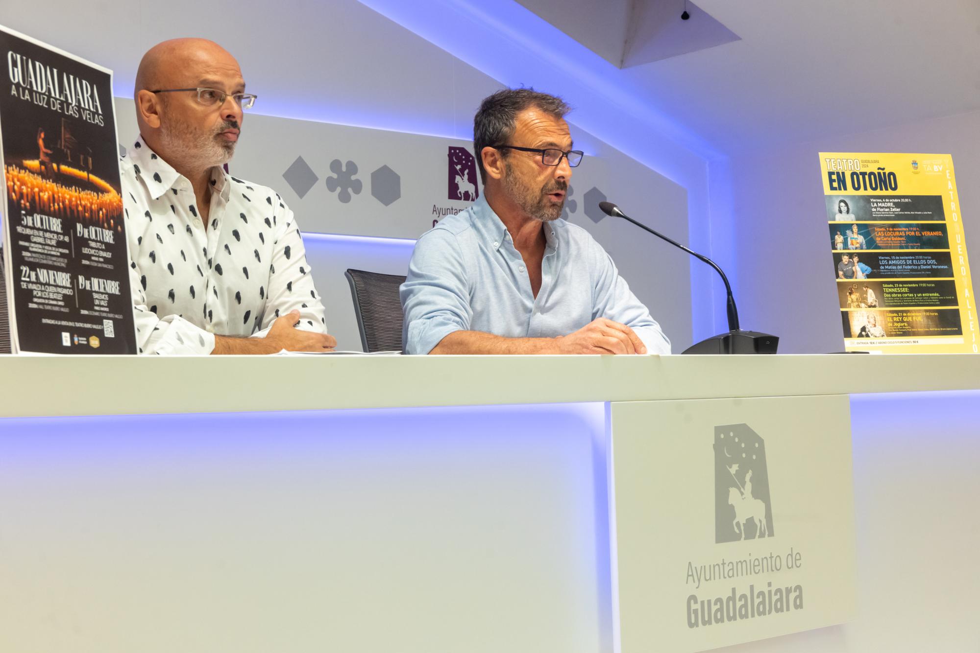 El concejal de Cultura del Ayuntamiento de Guadalajara, Javier Toquero, junto al director de escenarios culturales de la concejalía de Cultura, Julio Gómez, han presentado buena parte de la que será la programación cultural para los próximos meses, en la que destaca la iniciativa ‘Guadalajara a la luz de las velas’, "una oportunidad de disfrutar de la música en directo en escenarios únicos como pueden ser el cementerio, la Iglesia de San Francisco o el escenario del Teatro Buero Vallejo", ha comentado Toquero.