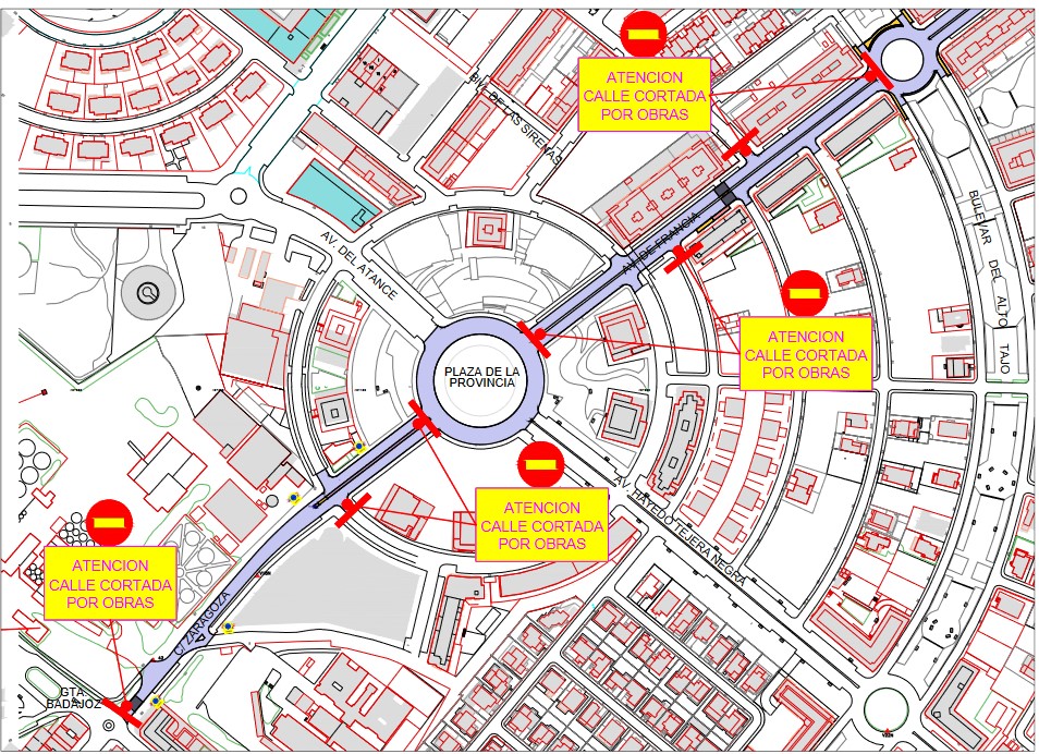 - Día 19 corte de Tráfico en Avenida de Francia (de Plaza de las Provincia a Glorieta de los Valles). Este corte permanecerá durante 4 semanas para proceder a la renovación de la red de alcantarillado existente, y posteriormente proceder al aglomerado de esta calle. El tráfico de las calles adyacentes se verá modificado para poder acceder a los garajes existentes.