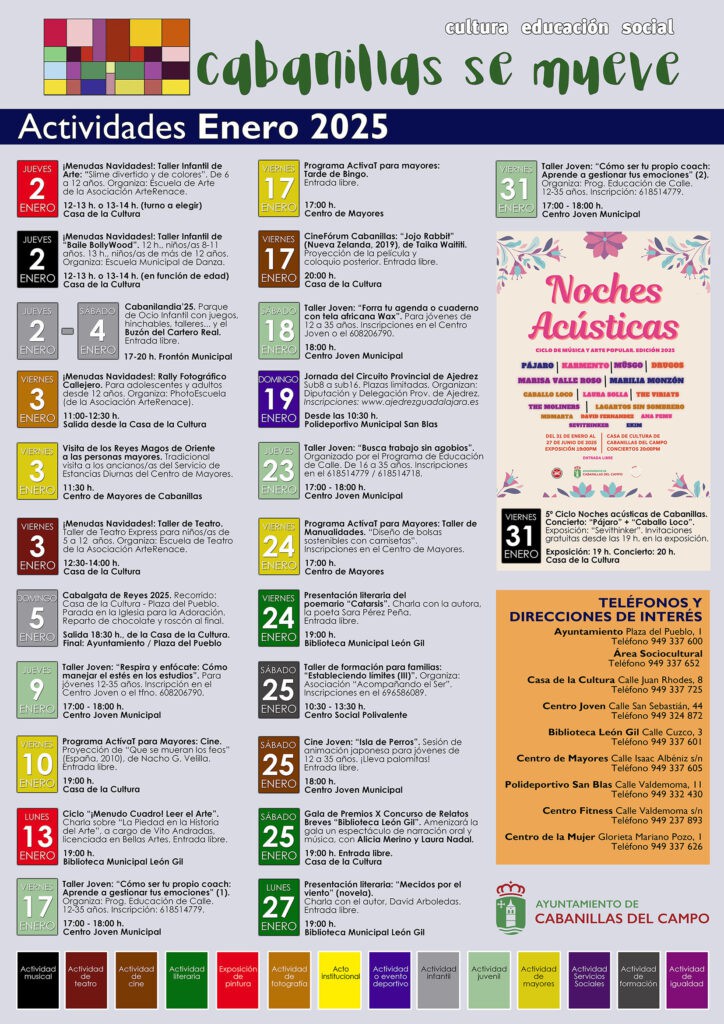 Este mes de enero de 2025, los residentes de Cabanillas del Campo podrán disfrutar de una variada oferta cultural y social. El ayuntamiento ha preparado un programa que busca fomentar la participación ciudadana y enriquecer la vida comunitaria.