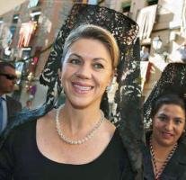 La foto que ardido se mostraba a la presidenta de Castilla La Mancha en el desfile del Corpus Christi de Toledo y en la que se podía leer "Menos mantilla y más plantilla
