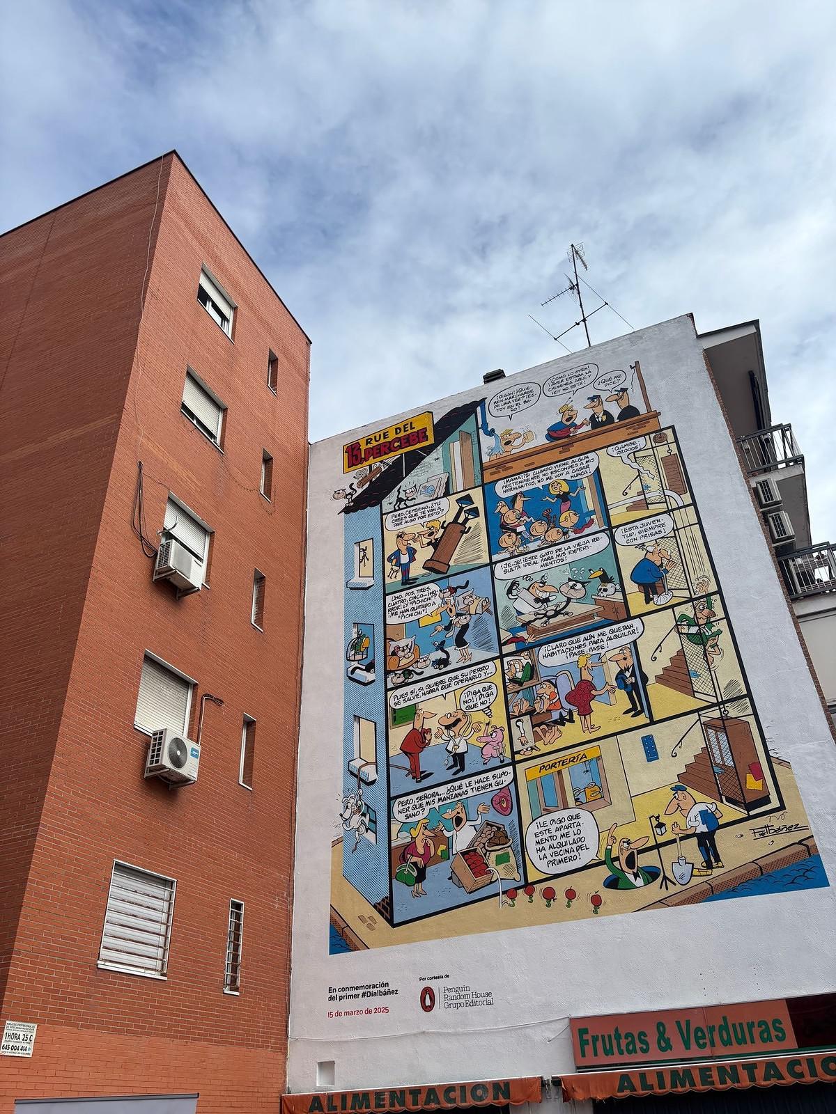 El mural, obra de los artistas NSN997 y Kerudekolorz e inspirado en el arte urbano de los 80 y 90, cubre la fachada del edificio de la calle del General Ricardos, 46. En esa ubicación, mañana 15 de marzo, fecha de nacimiento del autor, se habilitará un espacio con actividades para lectores y para que los más pequeños conozcan a Ibáñez. Un acto que se organiza para homenajear al maestro de cómic y del tebeo cuando se celebra el I Día Oficial de Francisco Ibáñez, que coincide por cercanía con el Día Internacional del Cómic y el Tebeo, el próximo 17 de marzo.